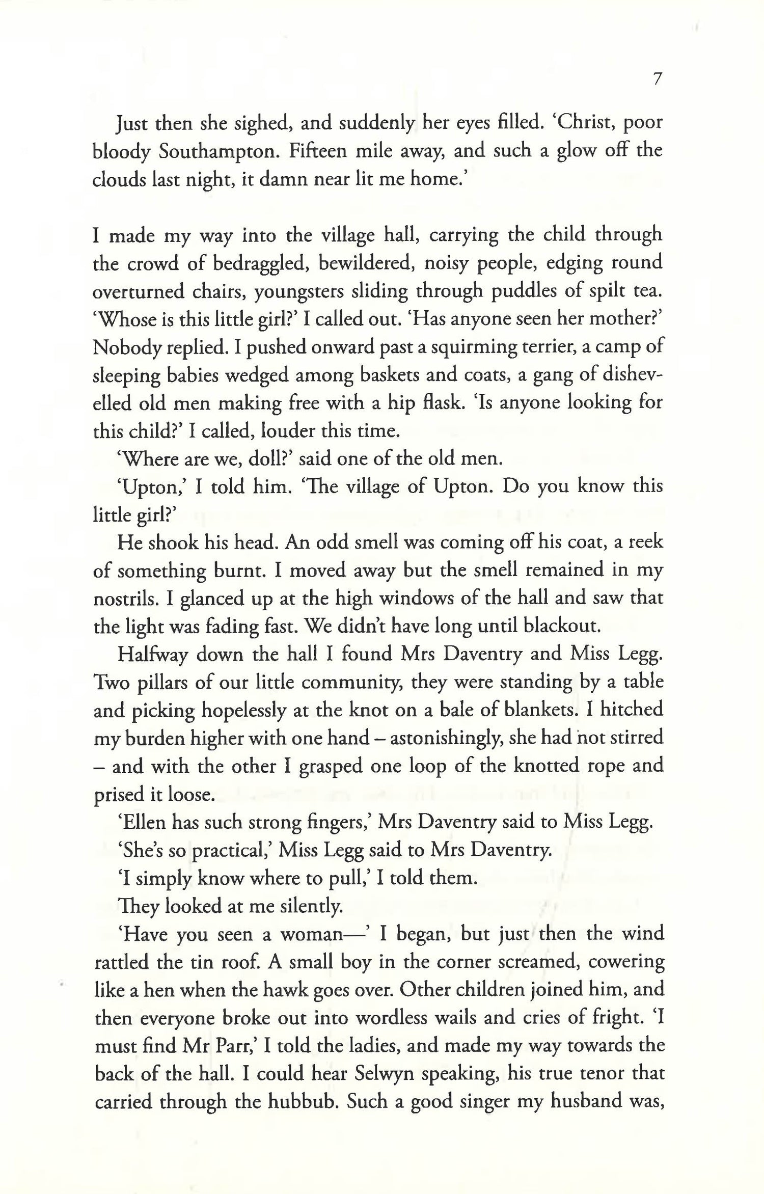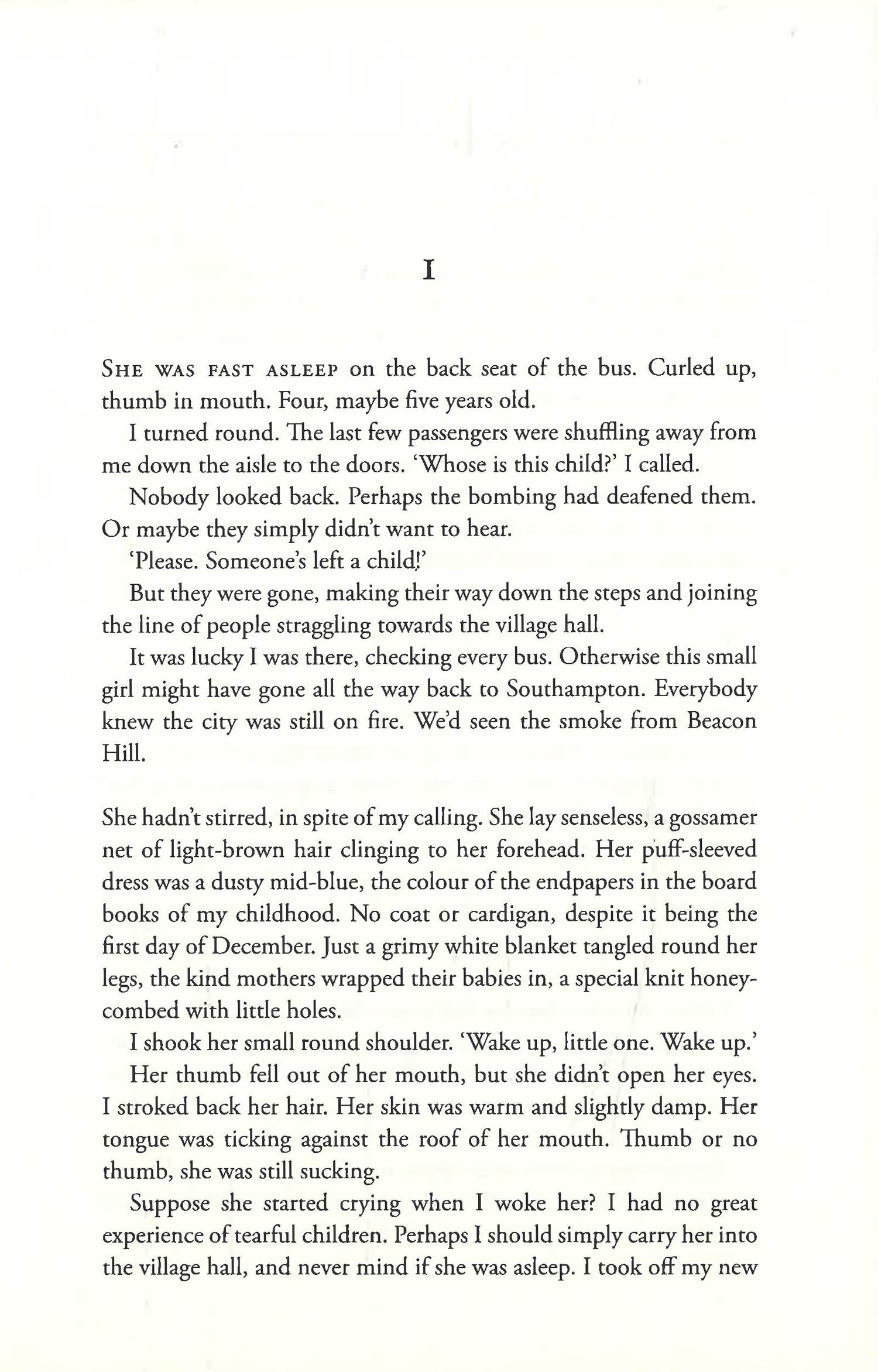 Ellen Parr has always been sure she never wanted children. But when she finds a young girl asleep and unclaimed at the back of a bus fleeing the Blitz in Southampton, everything she once believed is overturned. As she takes Pamela into her home, the little girl cracks open the past Ellen thought she had escaped and the future she thought she wanted, for in uncertain times it seems the only certainty is love. But with the end of the fighting comes the realization that Pamela was never hers to keep...