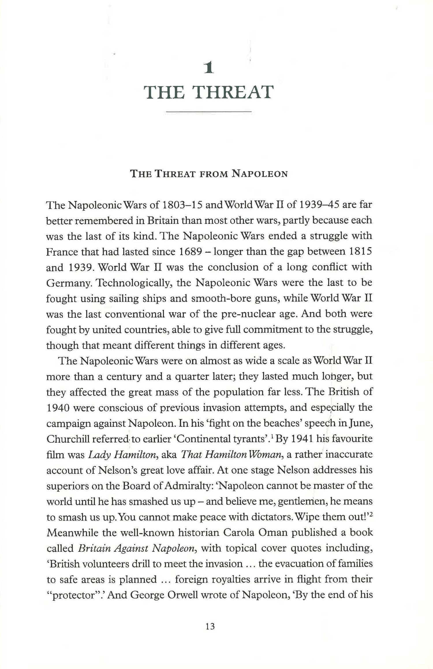 ...we shall defend our Island, whatever the cost may be, we shall fight on the beaches, we shall fight on the landing grounds, we shall fight in the fields and in the streets, we shall fight in the hills; we shall never surrender' Churchill made this defiant statement in his speech to the Commons on 4 June 1940 shortly after the BEF's rapid evacuation from Dunkirk. All that now stood between Hitler and Britain was a short stretch of water. The French on this particular occasion were Britain's allies, but just over a hundred years previously it had been their leader who had eyed Britain from across the Channel. Britain's proximity to the continent had always made it beguiling to prospective invaders. As well as the kudos of taking out a formidable opponent, Britain's fall would be accompanied by the gain of her overseas colonies and wealth, and, in Churchill's words again: 'it is that chance which has excited and befooled the imaginations of many Continental tyrants.' Brian Lavery, an established authority on the Napoleonic Wars and Second World War, articulates the parallels and defining features of these tumultuous periods in our history.