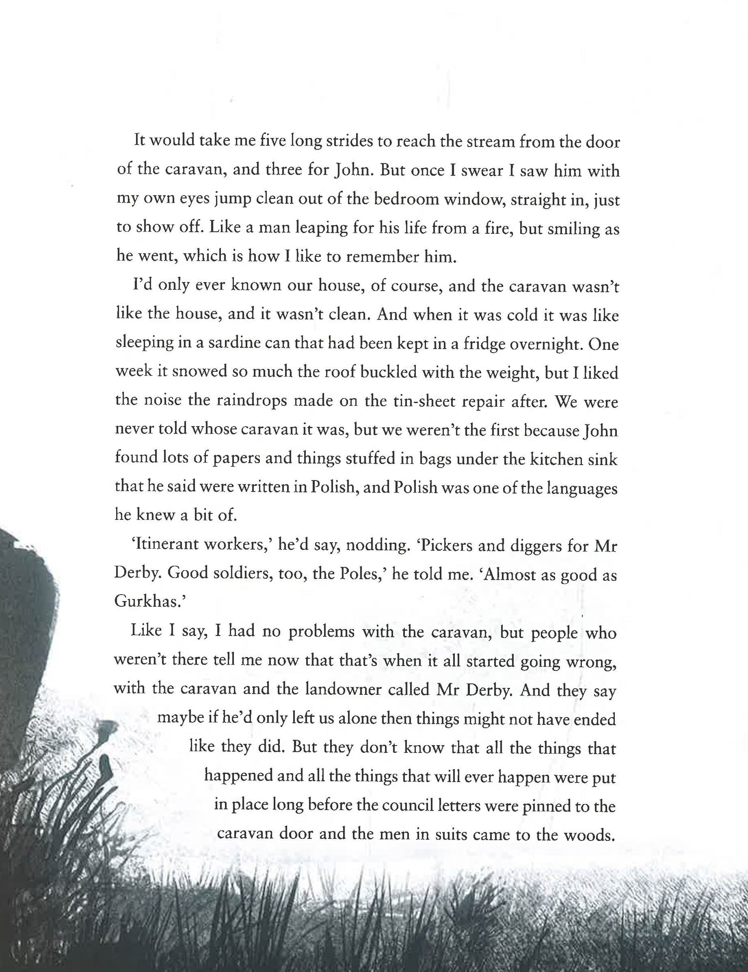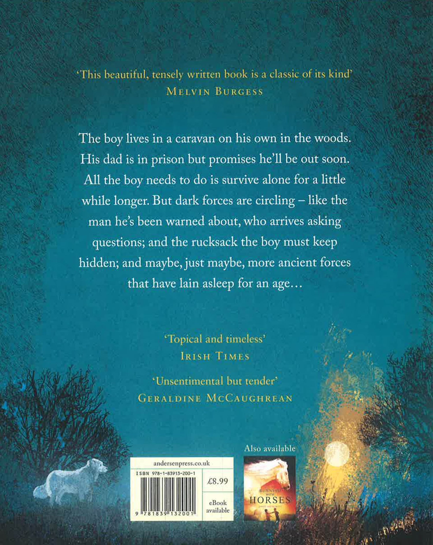 Longlisted for the Carnegie Medal Nominated for the Kate Greenaway Medal Boy lives in a caravan on his own in the woods. His dad, John, is in prison and promises to get out soon. All the boy needs to do is survive alone for a little while longer. But dark forces are circling – like the dangerous man in the Range Rover, who is looking for his stolen money. And then there are the ancient forces that have lain asleep in the woods for an age...