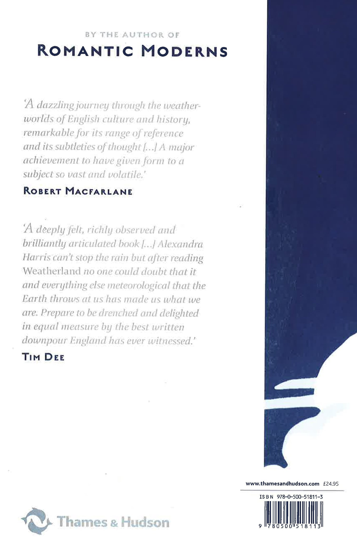 The story of English culture over a thousand years can be told as the story of changing ideas about the weather. Writers and artists across the centuries, looking up at the same skies and walking in the same brisk air, have felt very different things. In a sweeping panorama, Weatherland allows us to witness cultural climates on the move. The Anglo-Saxons before the Norman Conquest lived in a wintry world, writing about the coldness of exile or the shelters they must defend against enemies outdoors. The Middle Ages brought the warmth of spring; the new lyrics were sung in praise of blossom and cuckoos. It is hard to find a description of a rainy night before 1700, but by the end of the eighteenth century the Romantics will take a squall as fit subject for their most probing thoughts. There have been times when the numbers on a rain gauge count for more than a pantheon of aerial gods. There have been times for meteoric marvels and times for gentle breeze. The weather is vast and yet we experience it intimately, which is why Alexandra Harris builds her remarkable story from small evocative details. There is the drawing of a twelfth-century man in February, warming bare toes by the fire. There is the tiny glass left behind from the Frost Fair of 1684, and the Sunspan house in Angmering that embodies the bright ambitions of the 1930s. Harris catches the distinct voices of compelling individuals. Bloody cold, says Jonathan Swift in the slobbery January of 1713. Percy Shelley wants to become a cloud and John Ruskin wants to bottle one. Weatherland is a celebration of English air and a life-story of those who have lived in it. As we enter what may be the last decades of English weather as we know it, this is a history for our times.