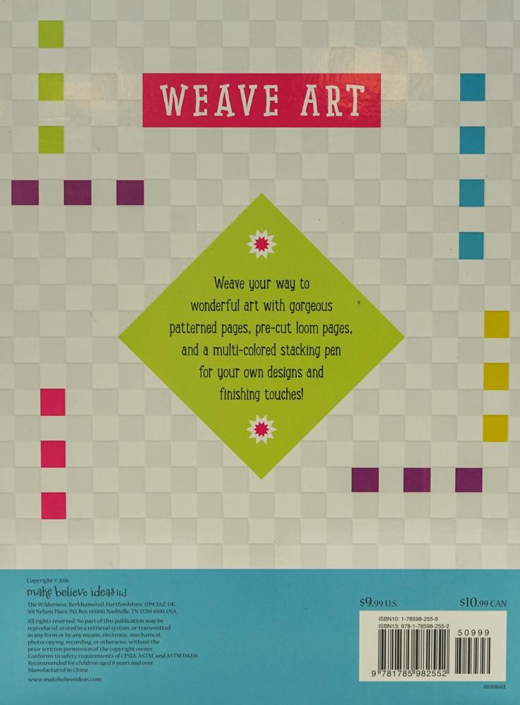 Introducing Weave Art, a brand-new take on a classic craft activity!This innovative book has all you need to create stunning weave art. Follow the guidelines to cut the decorative paper into strips, then weave them through the pre-cut pages to create your amazing art! The pages are cut in waves, lines, and fun angles, meaning you can experiment with your weave art! The pages also have beautiful borders, making your art look even more professional. The book comes with a fun pen to finish your creations!