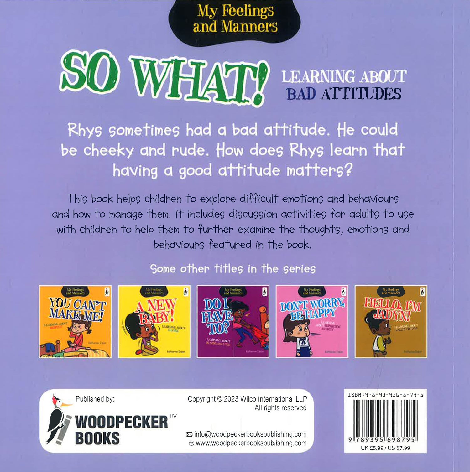 This book helps children to explore difficult emotions and behaviours and how to manage them. It includes discussion activities for adults to use with children to help them to further examine the thoughts, emotions and behaviours featured in the book.
