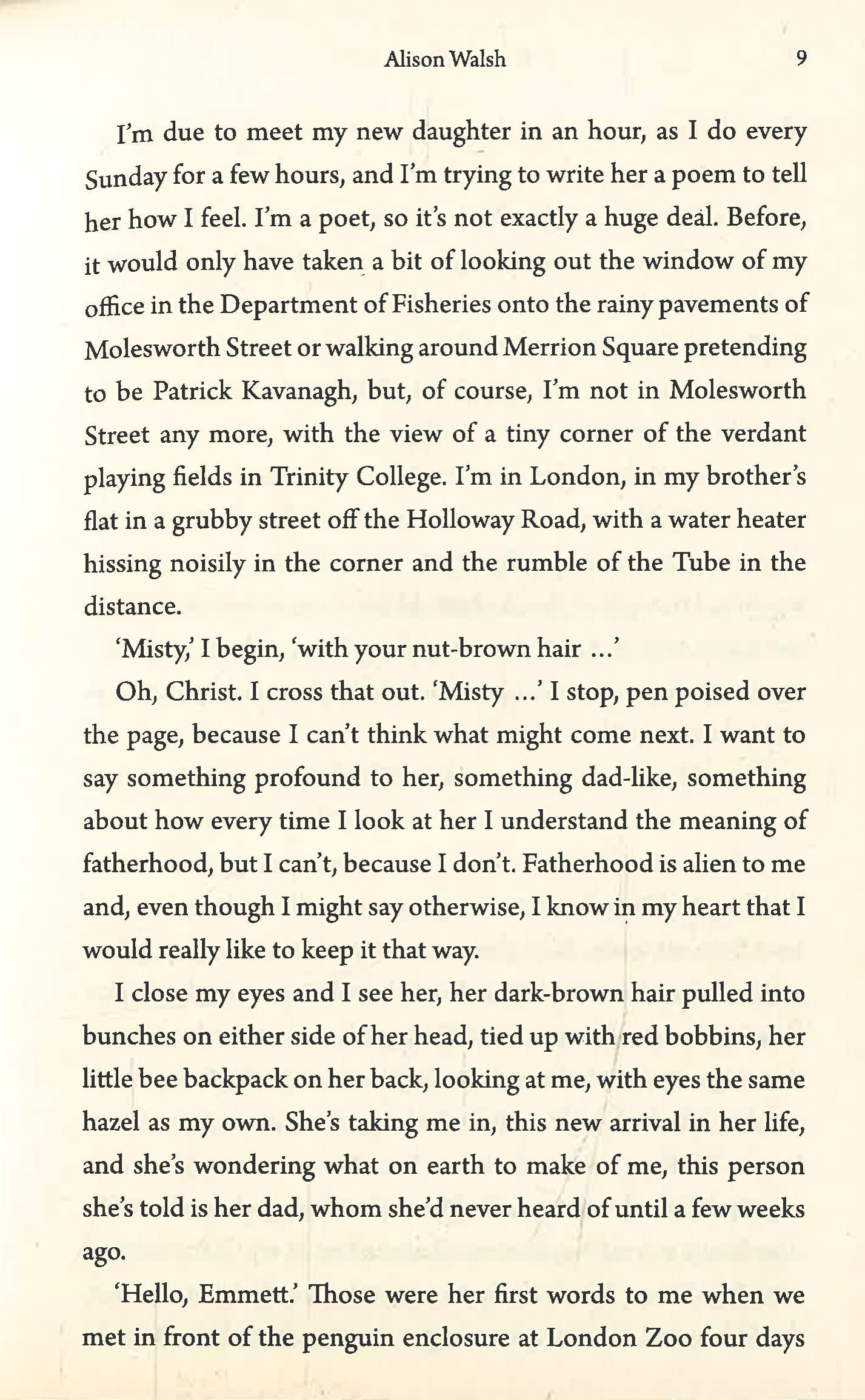 Now almost thirty, Emmett has just begun a fresh chapter in London so he can spend weekends with his seven-year-old daughter, whose existence he only recently discovered. Things are off to a bumpy start -- he's not quite sure he's the father Misty expected -- but they're finding their way.
