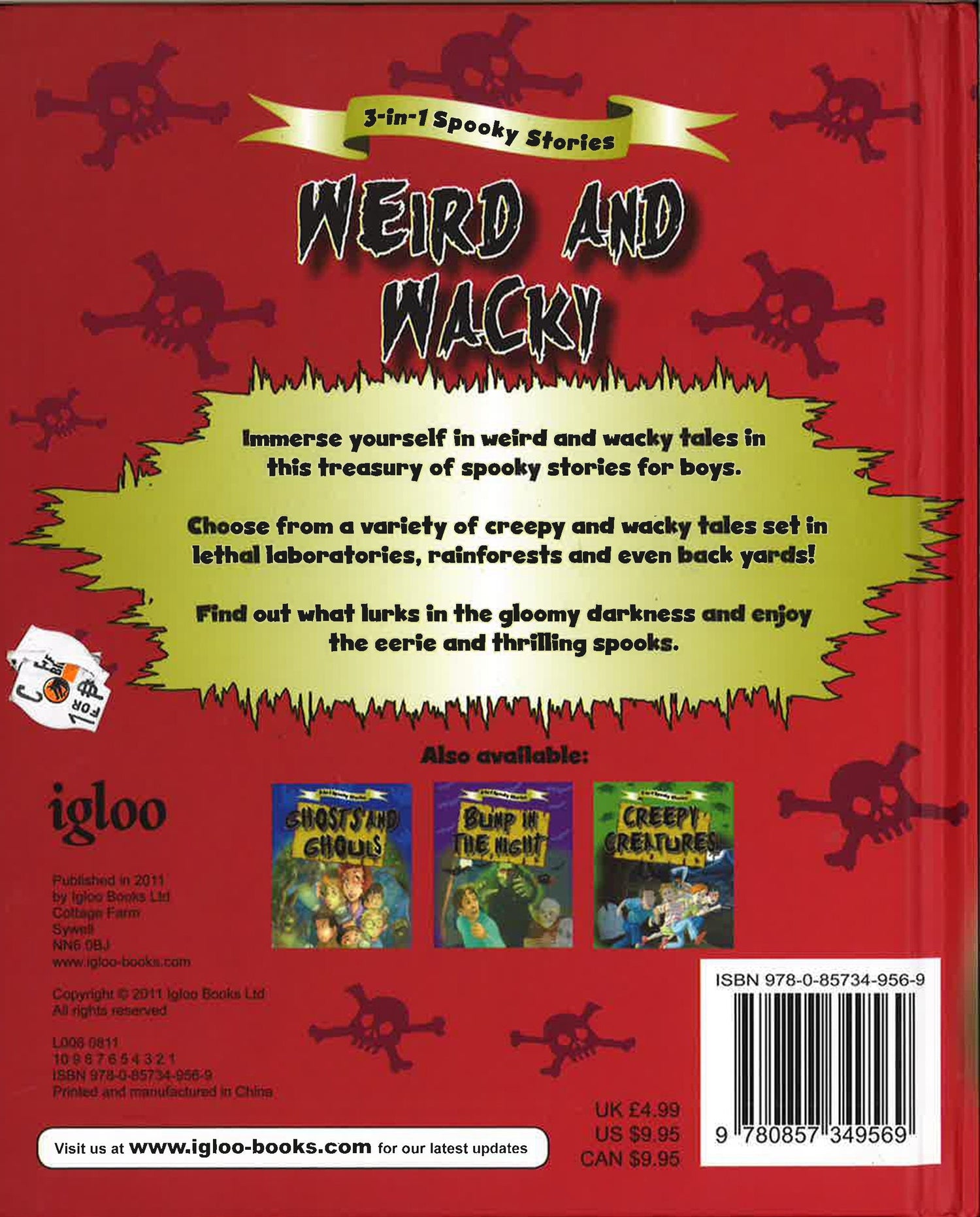 Immerse yourself in weird and wacky tales in this treasury of spooky stories for boys. Choose from a variety of creepy and wacky tales set in lethal laboratories, rainforests and even back yards. Find out what lurks in the gloomy darkness and enjoy the eerie and thrilling spooks.