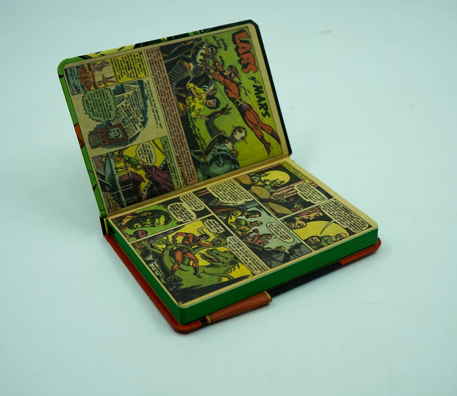 This lively pocket-sized notebook is an action-packed aid to writing, providing the easiest and most accessible way of jotting down those incredible ideas when the muse strikes. It comes with a cult classic sci-fi comic strip from the 1950s, Lars of Mars! Plus, there's a back pocket for keeping inspirational clippings, and a ribbon marker to keep track of your thoughts. It's the ideal gift for the budding writer in your life, or that retro-loving friend.