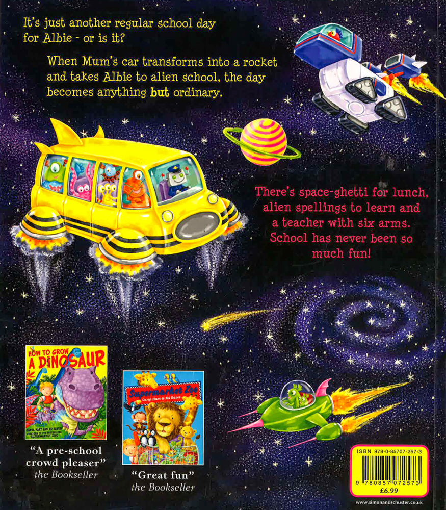 Join Albie at Alien School in this intergalactic follow-up to Supermarket Zoo and How to Grow a DinosaurWhen, one morning, Mum calls Albie for school, he really doesn't want to go, He's too busy playing space rescues with his toys. But, when Albie steps into the playground, he quickly realizes that this isn't any old school. It's Alien School and there's a big, shaggy alien heading in his direction! Join Albie as he makes intergalactic friends, enjoys space-ghetti at the school canteen and rides on space scooters - school has never been so much fun!