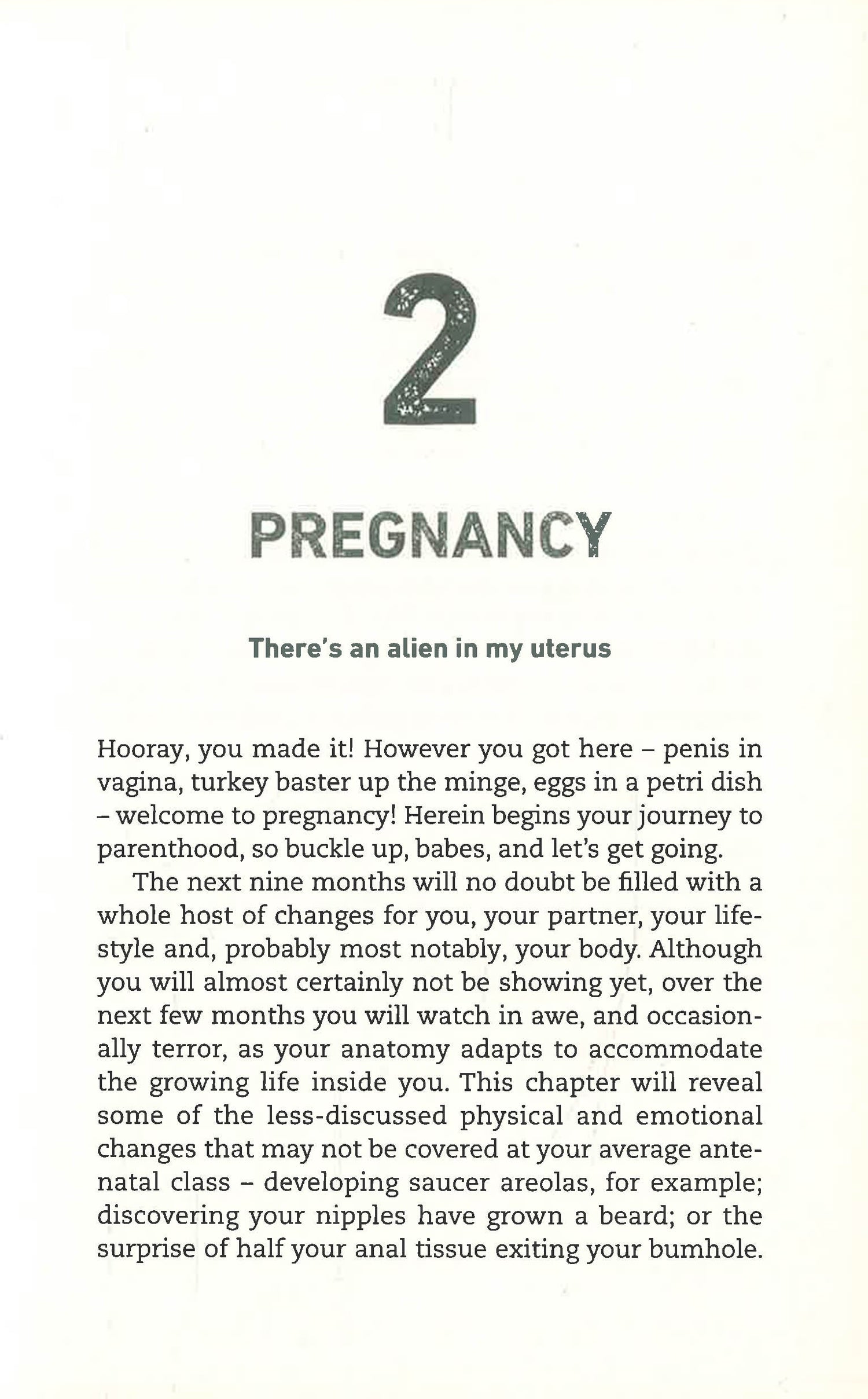 I’m assuming you’ve picked up this book because you’re either curious about having kids, you’re currently up the duff, or you’re stumbling through the early days of parenthood with a mattress-sized sanitary towel between your legs wondering what the hell has just happened. That, or you’re killing time in WHSmith, waiting for your flight to Ibiza. You lucky bastard.