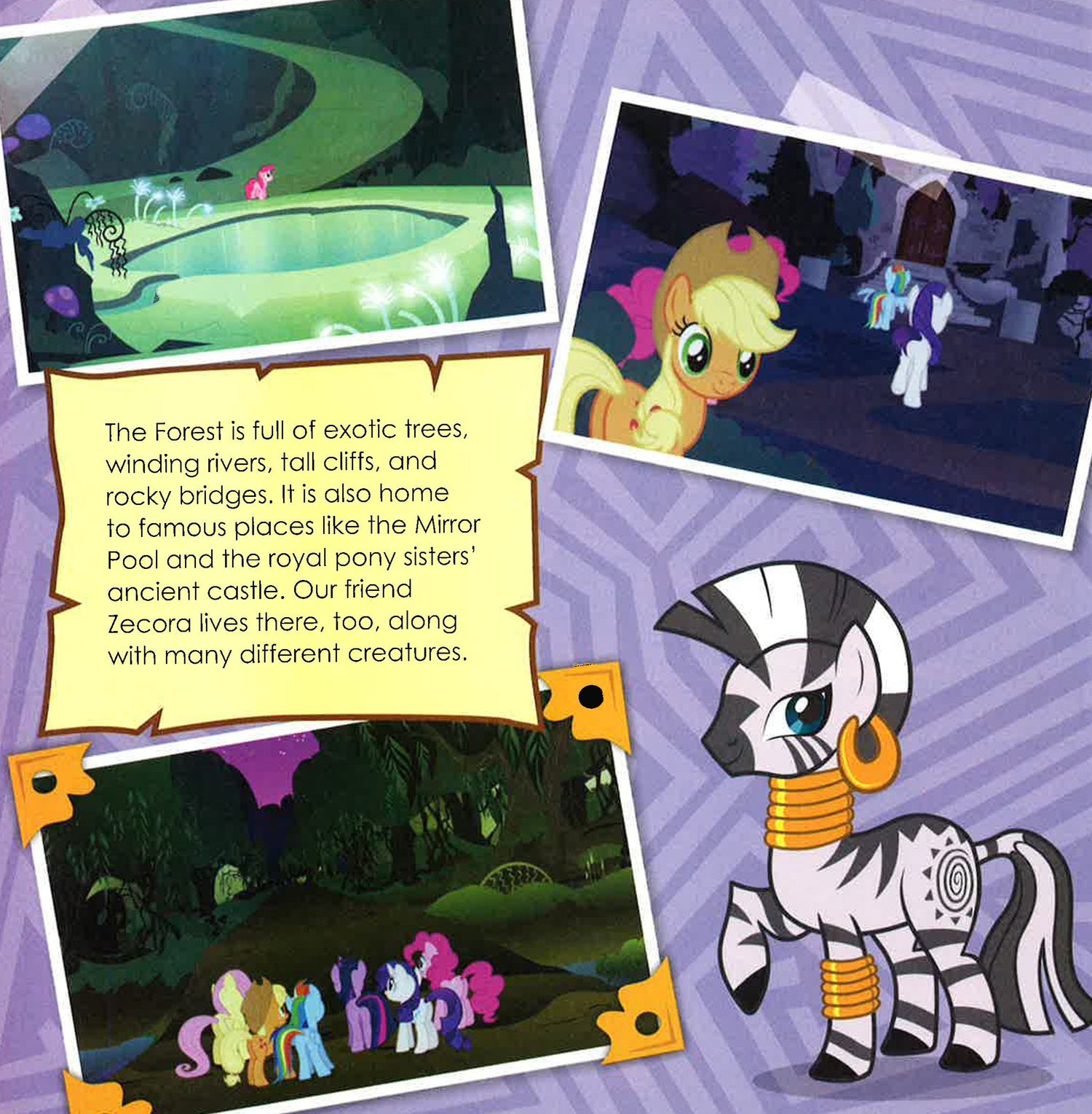 The Everfree Forest is a mysterious land just outside Ponyville that serves as the home to many unusual creatures. Read about your favorite ponies' adventures with characters like Gilda the Griffon and Zecora!