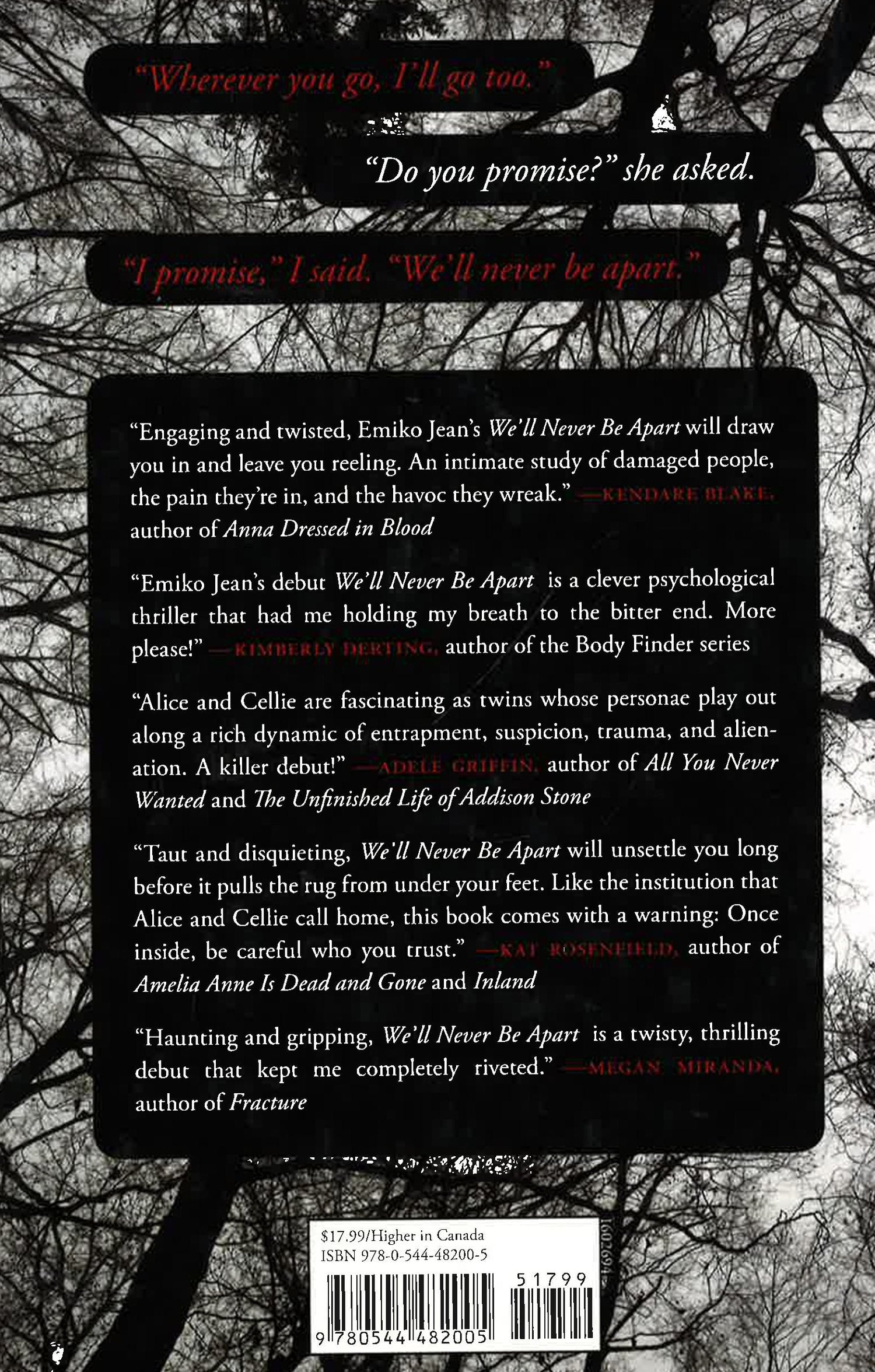 Murder. Fire. Revenge. That's all seventeen-year-old Alice Monroe thinks about. Committed to a mental ward at Savage Isle, Alice is haunted by memories of the fire that killed her boyfriend, Jason. A blaze her twin sister Cellie set. But when Chase, a mysterious, charismatic patient, agrees to help her seek vengeance, Alice begins to rethink everything. Writing out the story of her troubled past in a journal, she must confront hidden truths. Is the one person she trusts only telling her half the story? Nothing is as it seems in this edge-of-your-seat psychological thriller from the debut author Emiko Jean. * This book may have remainder mark*