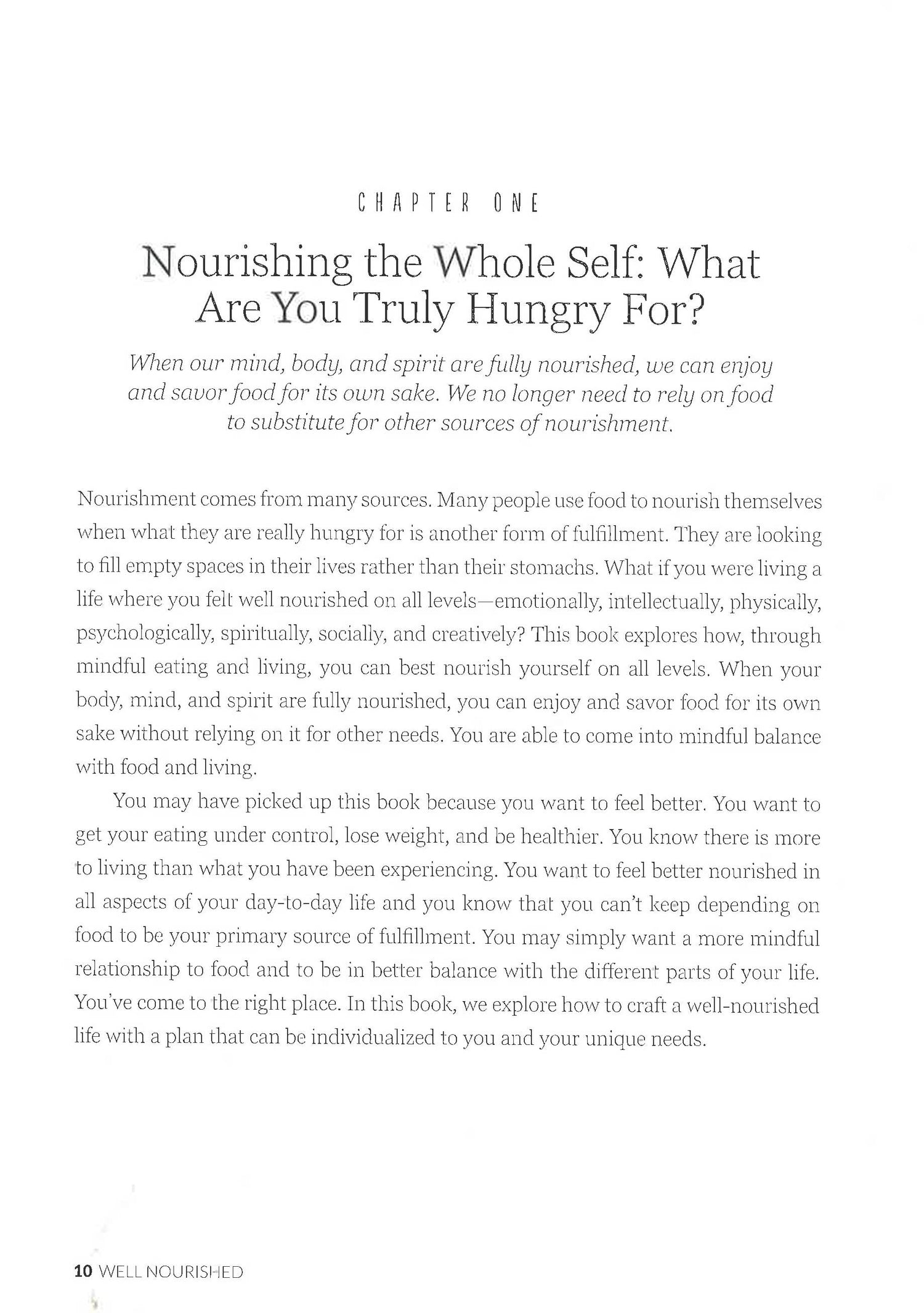 You don't have to turn to food in difficult times. Well Nourished shows you how to develop a mindful relationship with food as you nourish yourself emotionally. There is much more to nourishing yourself than simply eating food. After a long day of feeling run down and exhausted, what you're really hungering for is other forms of nourishment. Well Nourished is here to show you how to live a life where feel nourished emotionally, intellectually, physically, socially, and creatively. This is your chance to be mindfully present as you receive, experience,and engage in the nourishing activities and moments that will sustain you on levels other than what your stomach is telling you. You will learn to maintain an inner sense of balance and nourishment even when the waters of life are pitching you around like a ship in a storm. Well Nourished gives you the tools and practices to accomplish all of this when you might otherwise turn to food in these difficult times. With Well Nourished you will develop a mindful relationship to food and craft a well nourished life.