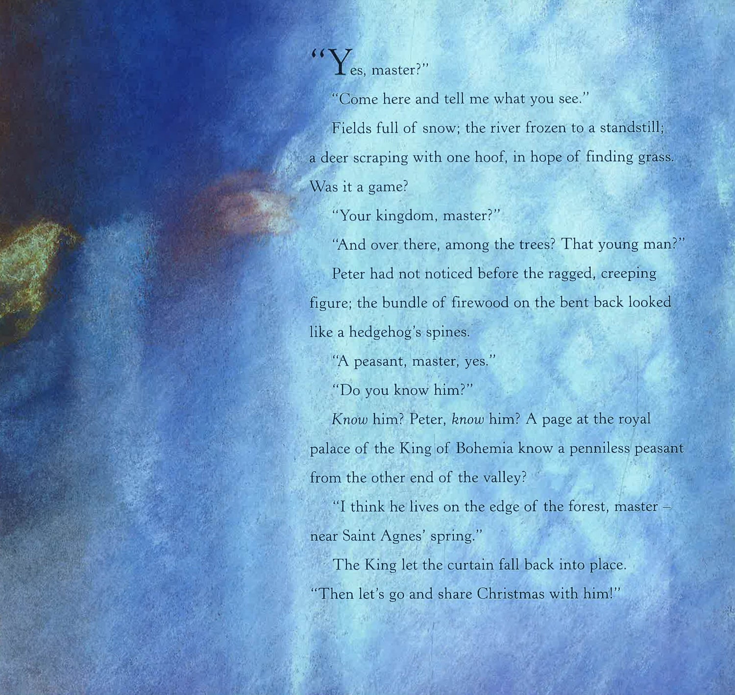Good King Wenceslas looked out On the Feast of Stephen, When the snow lay round about, Deep and crisp and even ...A beautiful telling of the age-old carol of Good King Wenceslas and his page, who set out on a bitter winter night to deliver the spirit of Christmas. Christian Birmingham's majestic images in rich, soft oil pastels are a perfect compliment to this much-loved story.