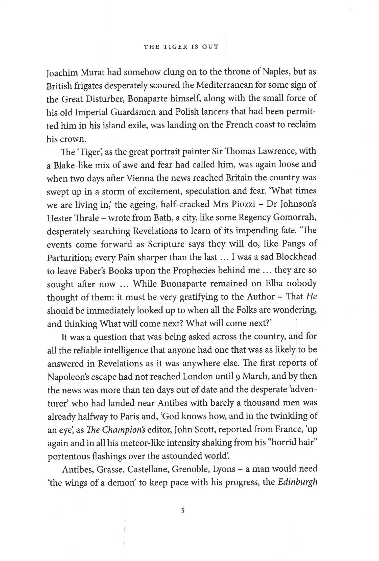 Midnight, Sunday, June 18, 1815. Britain holds its breath. Since Napoleons escape from Elba in February, Europe has been jolted from eleven months of peace back into the frenzied panic of a war it believed had ended. The whole complexion of the world is changed again, writes George Ticknor, then a young American lawyer in Britain for the first time. God only can forsee the consequences. The nation is awash in reports and rumors. The Battle of Waterloo is close at hand.