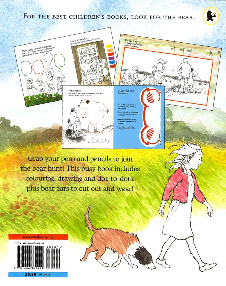 Colour in the bear hunt with this wonderful colouring activity book, based on the classic picture book by Michael Rosen and Helen Oxenbury. For 25 years, readers have chanted along with this award-winning favourite. Join in the fun with this colouring book featuring all the characters from the beloved story. Little ones will be absorbed for hours with this book filled with colouring scenes, plus lots of different activities that encourage imagination. Join the dots, colour by numbers and chances to invent your own creatures make this a perfect book to take on holiday or fill rainy days. You can even make your own bear ears to wear!