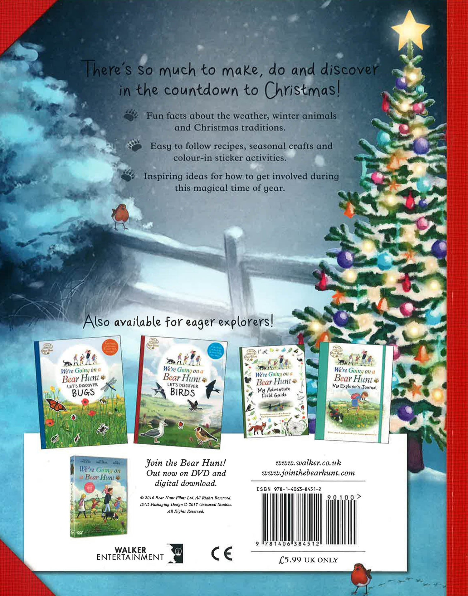 Featuring artwork from the animated special, this fun-filled guide to all things Christmas is packed with craft activities, recipes and stickers galore. Whether making a festive wreath from natural objects from the garden, baking ideas for a snowy day or even using your stickers to make table setting cards for your friends and family, this activity book has so many things to inspire young readers to join in with the magic of the world of We're Going on a Bear Hunt at this very special time of year.