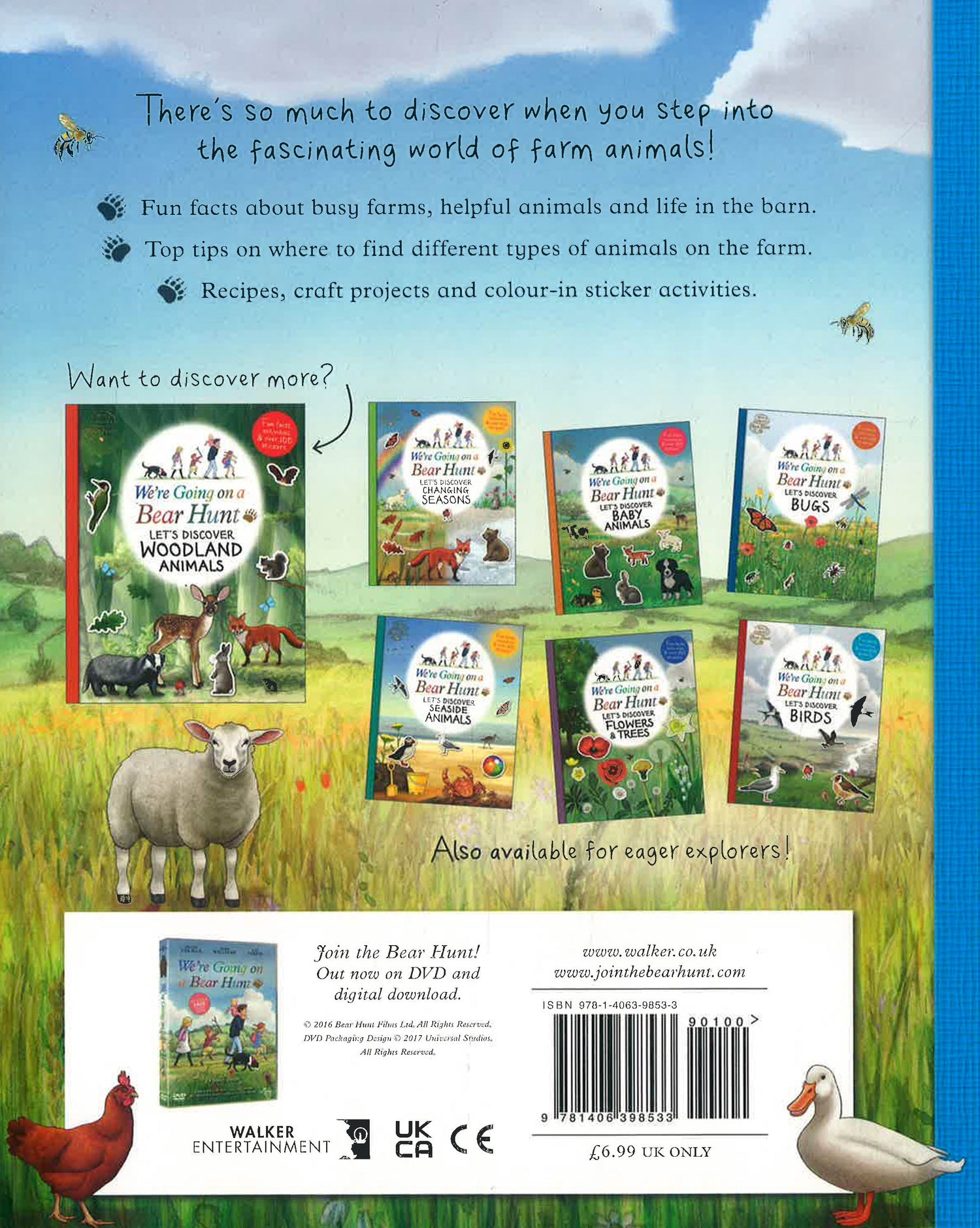 An inspiring and fun-filled guide to farm animals, featuring artwork from the animated special of We're Going on a Bear Hunt. In this interactive guide to farm animals, eager explorers will learn all about farm favourites including pigs, goats, sheep, horses, ducks and so much more! Packed with recipes, crafts and sticker activities galore, this beautifully illustrated sticker-activity book has plenty of ideas for farmyard adventures and fun facts for readers come rain or shine!