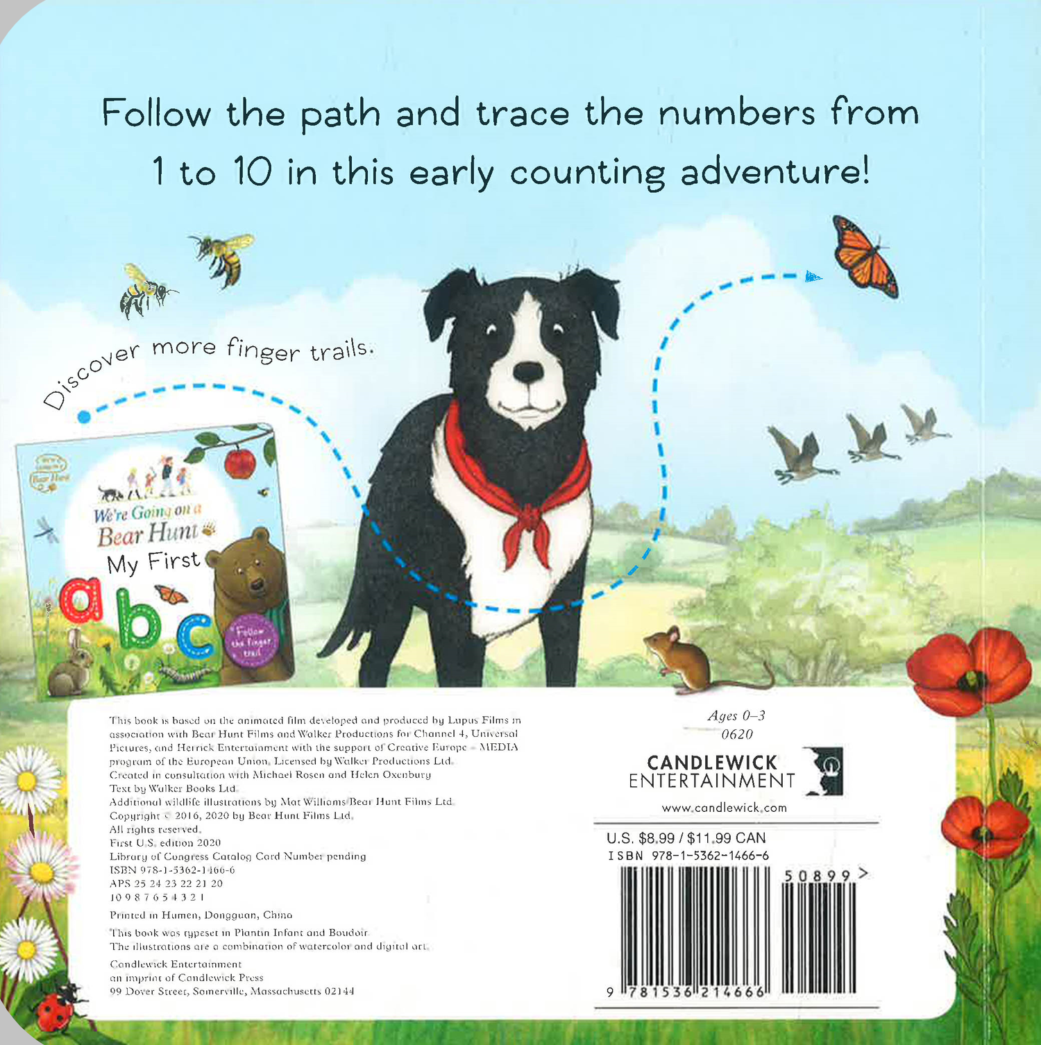 One dog, sniffing the floor . . . turn the page to discover more! Use your finger to trace the shape of each number, and learn all about numbers on this first counting adventure. This book's easy-to-follow pages features animals and plants from the beloved bear hunt film. Learning to count has never been more fun!