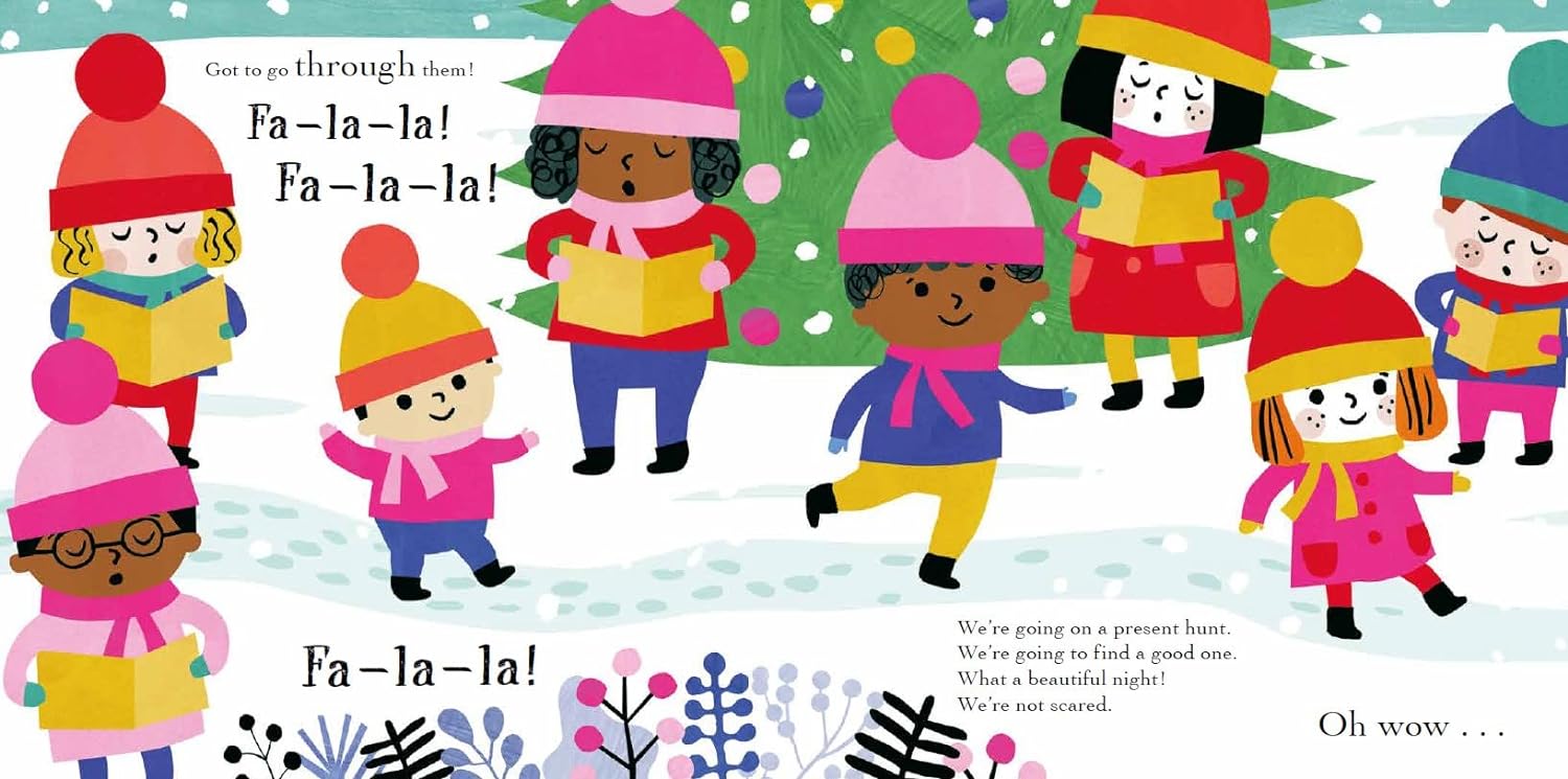 This joyful follow-up to We're Going on a Pumpkin Hunt has zingy neon ink on the cover and throughout, and is filled with cute characters and Christmas surprises! Repeated phrases and sound words make this an interactive picture book, great for sharing with the whole family at Christmas.