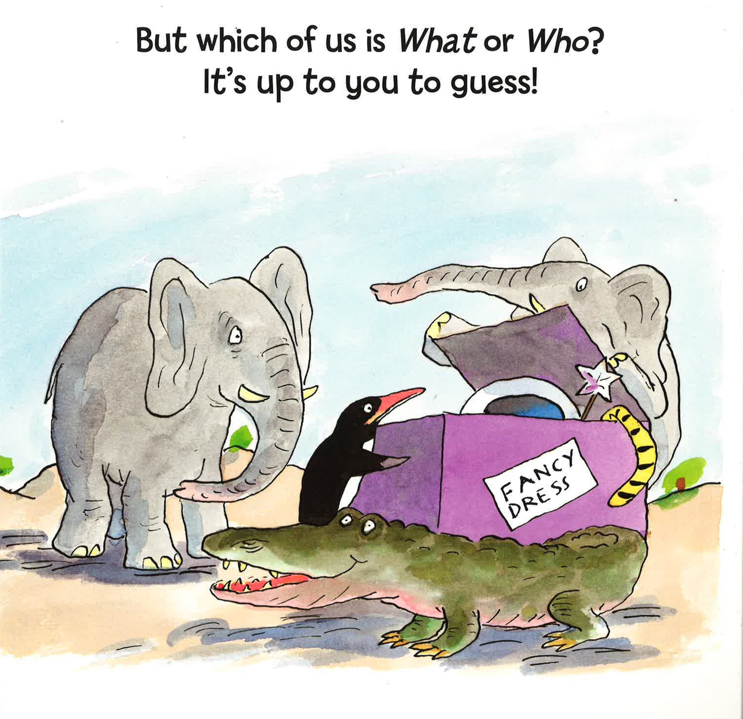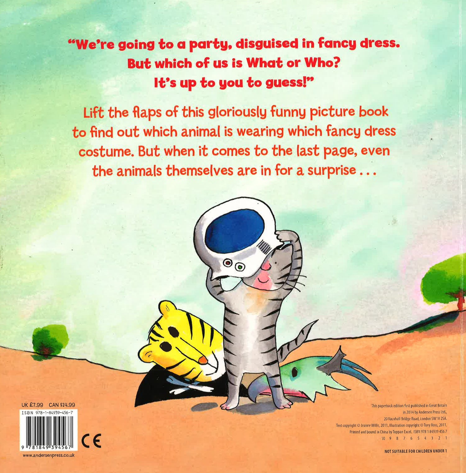 We're going to a party, disguised in fancy dress. But which of us is What or Who? It's up to you to guess! Lift the flaps of this gloriously funny book to find out which animal is wearing which fancy dress costume. But when it comes to the last page, even the animals themselves are in for a surprise...