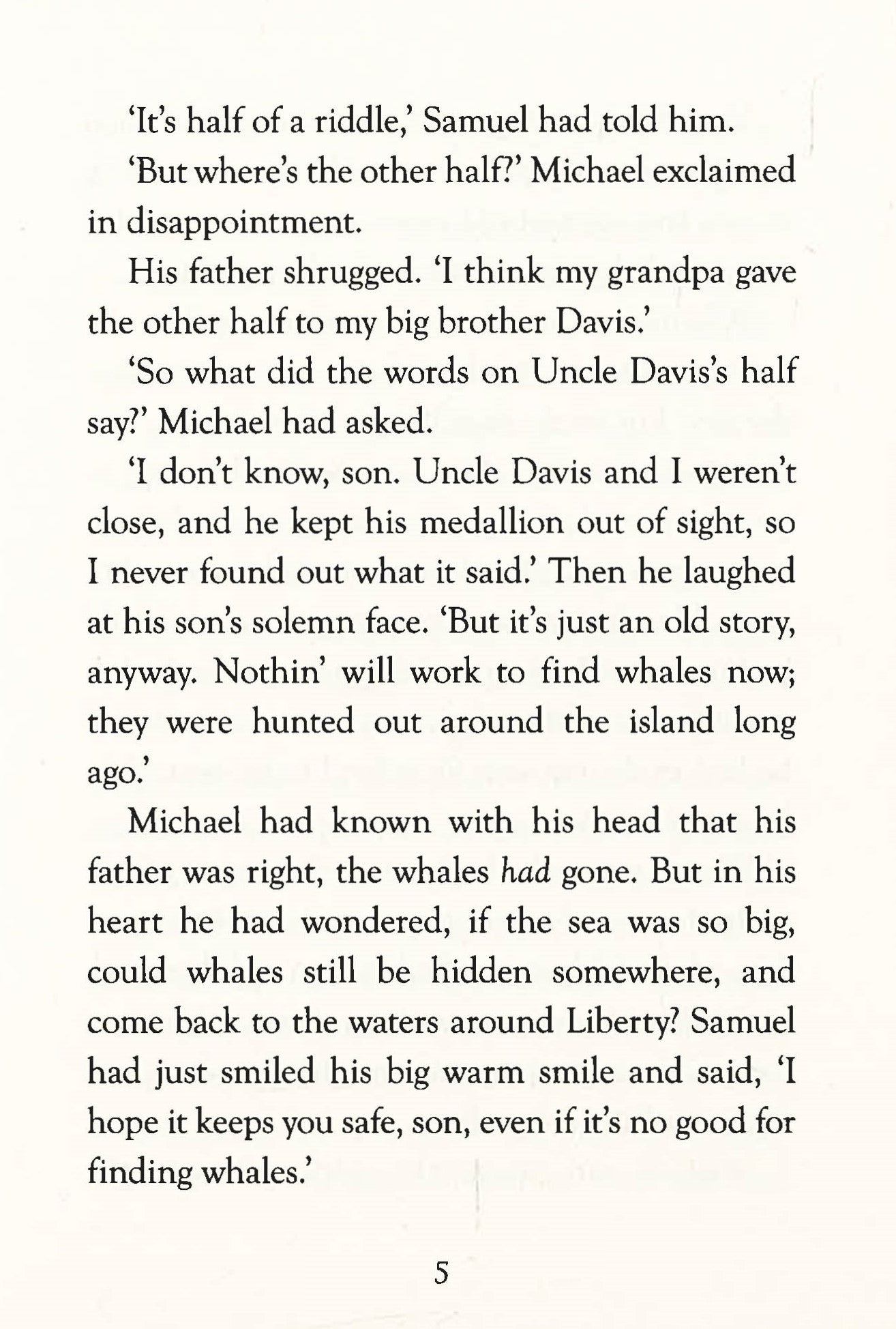 Michael, a young boy growing up on the tropical island of Rose Town, has been saving up for his own fishing boat for years. But when a terrible storm wrecks his home, Michael is forced to take a job working for a rich, mysterious newcomer named Spargo. Spargo asks Michael to search for one thing in the deep waters around Rose Town - whales . . .