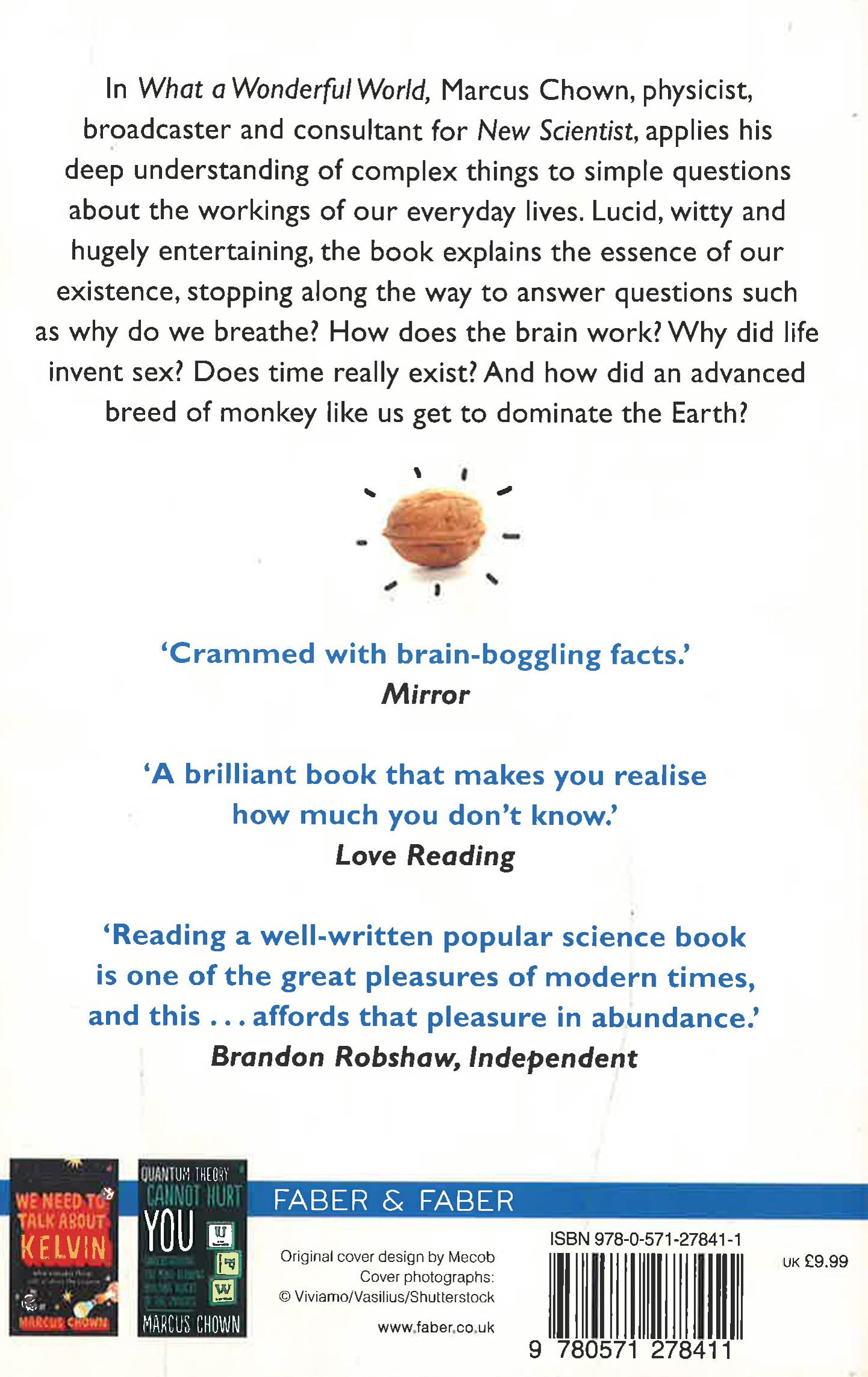 With wit, colour and clarity, What A Wonderful World quickly and painlessly brings us up to speed on how the world of the 21st century works. From economics to physics and biology to philosophy, Marcus Chown explains the complex forces that shape our universe. Why do we breathe? What is money? How does the brain work? Why did life invent sex? Does time really exist? How does capitalism work - or not, as the case may be? Where do mountains come from? How do computers work? How did humans get to dominate the Earth? Why is there something rather than nothing? In What a Wonderful World, Marcus Chown, bestselling author of Quantum Theory Cannot Hurt You and the Solar System app, uses his vast scientific knowledge and deep understanding of extremely complex processes to answer simple questions about the workings of our everyday lives. Lucid, witty and hugely entertaining, it explains the basics of our essential existence, stopping along the way to show us why the Atlantic is widening by a thumbs' length each year, how money permits trade to time travel why the crucial advantage humans had over Neanderthals was sewing and why we are all living in a giant hologram.