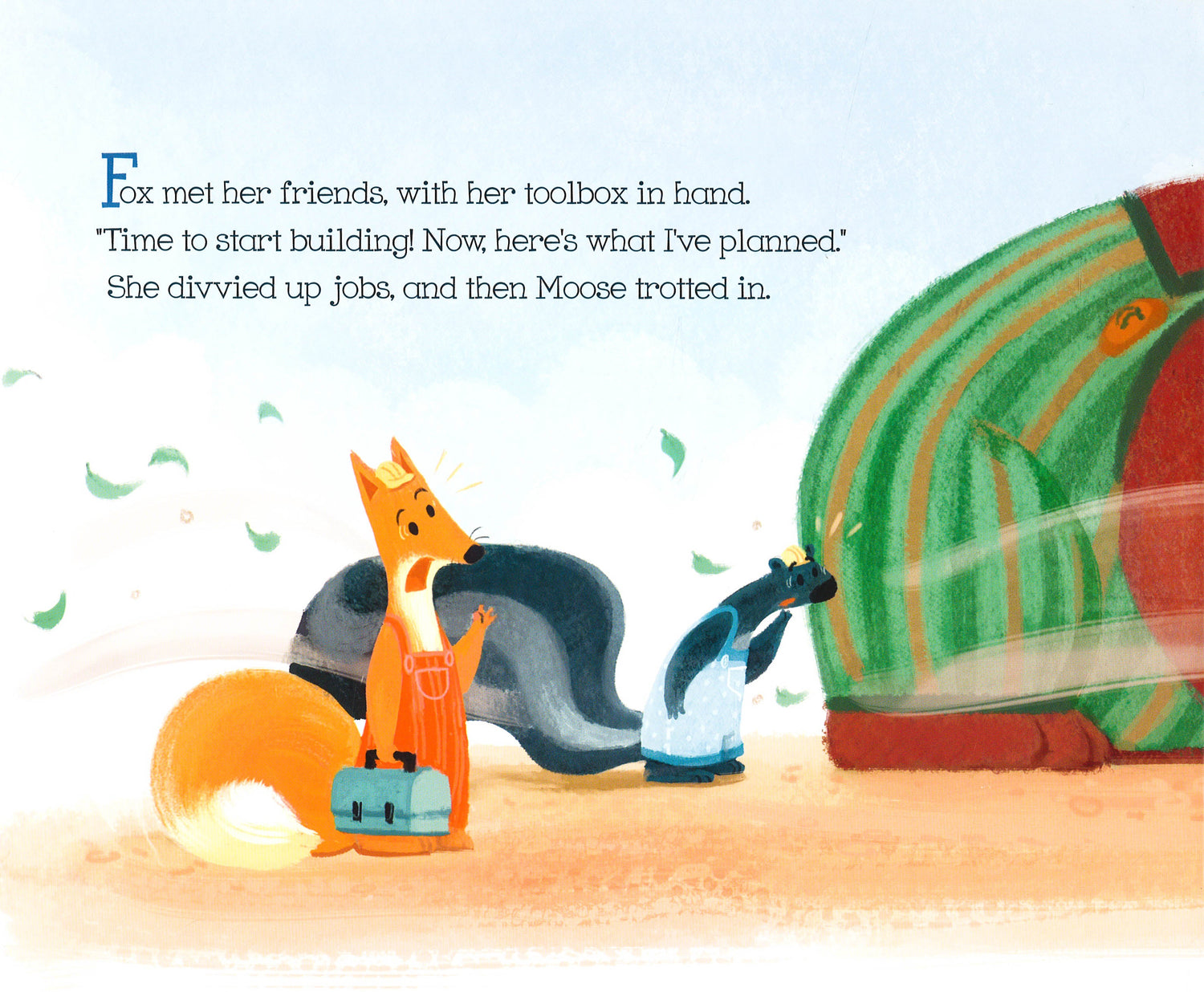 It takes a team to build a tree house--but what if that team includes one very bossy moose? When Fox, Toad, Bear, Porcupine, and Skunk set out to build a tree house, they know just what to do: they'll follow a plan and they'll work as a team. But when bossy Moose barges in and upends their plans with some of his own, his friends become more and more frustrated...until things go hilariously awry! This lively rhyming picture book is pure, bouncy fun even as it imparts a subtle lesson about teamwork. Young readers will love to chant along: "But what about you, Moose!"