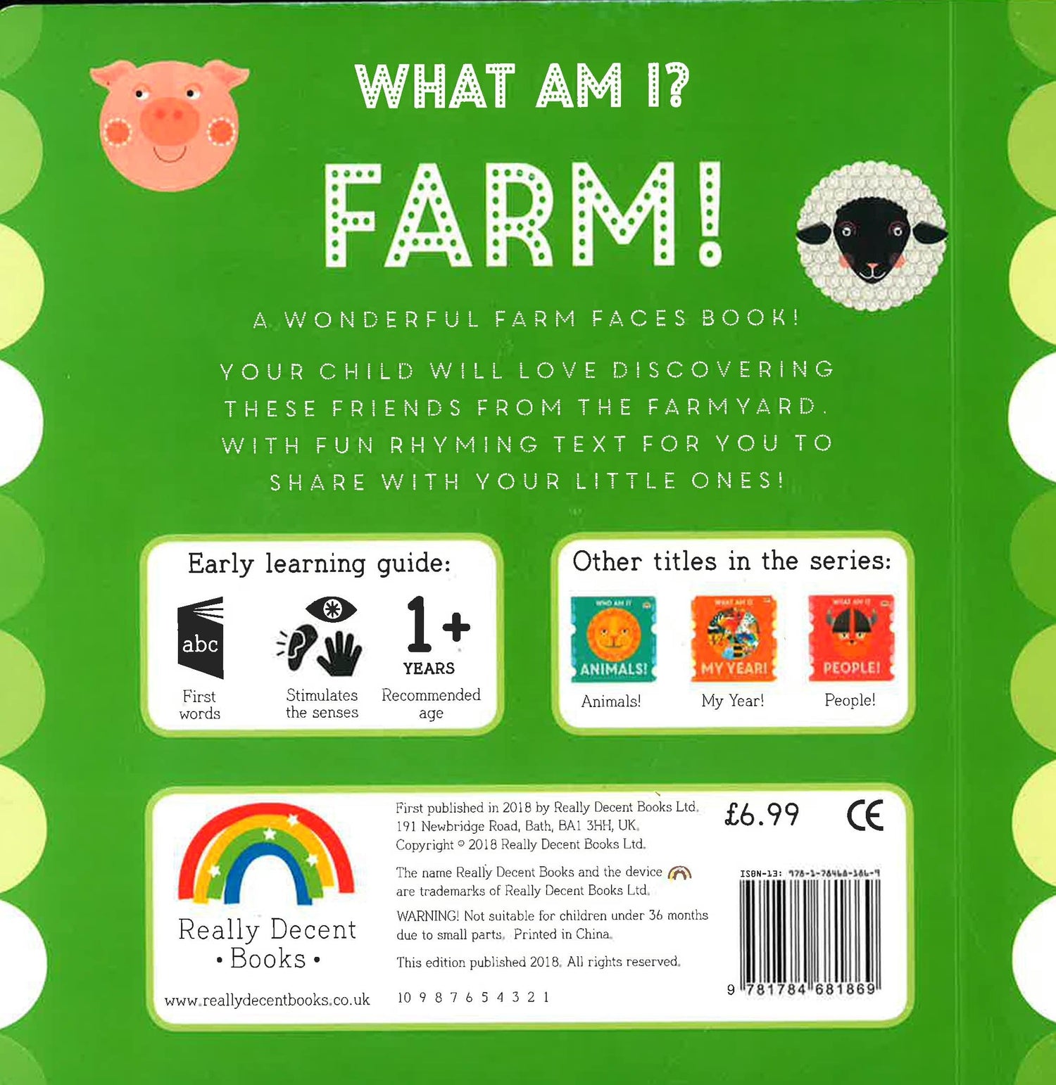 What am i? Farm! A wonderful farm faces book! Your child will love discovering these friends from the farmyard with fun rhyming text for you to share with your little ones!