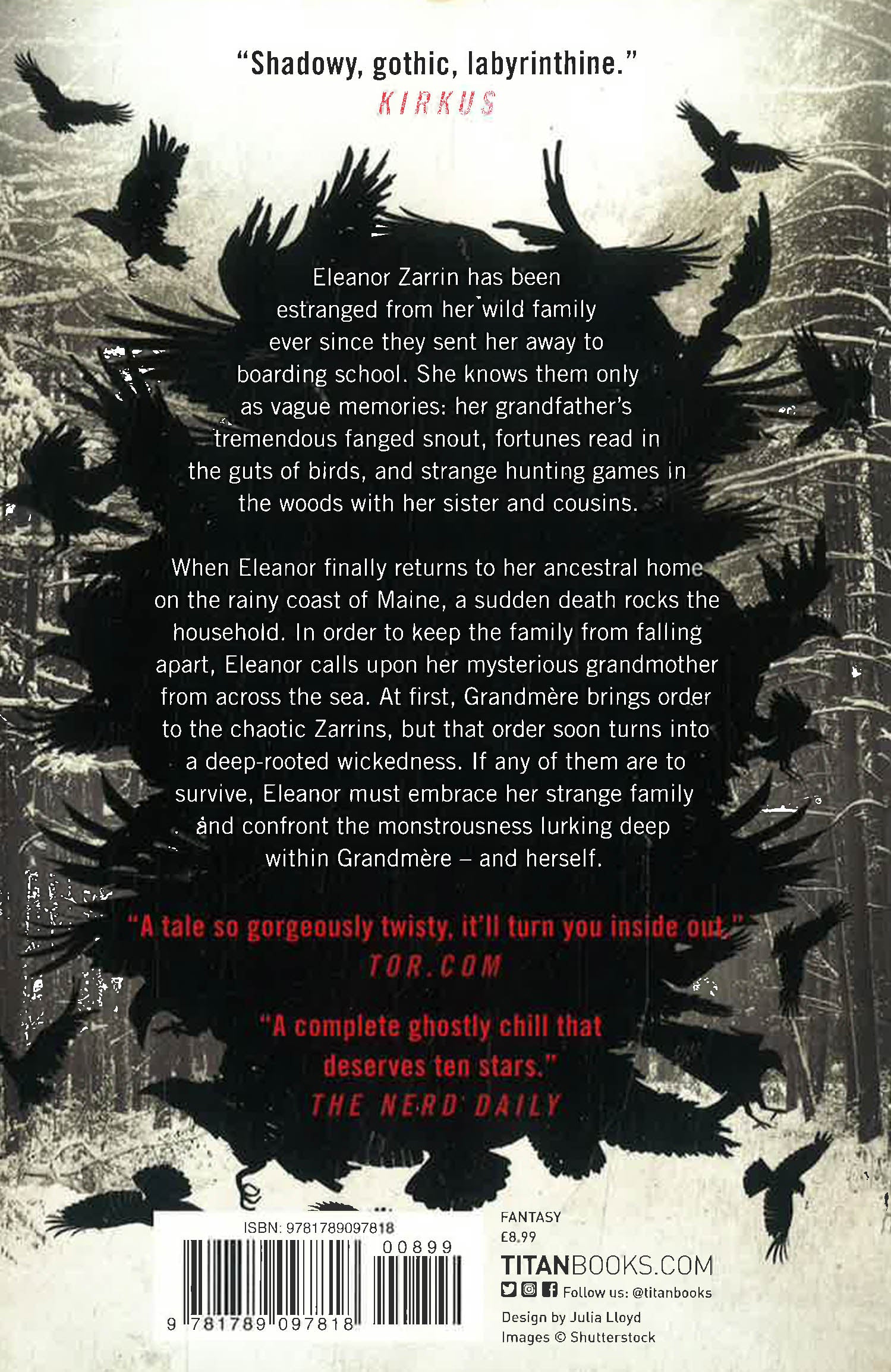 Eleanor has not seen or spoken with her family in years, not since they sent her away to Saint Brigid's boarding school. She knows them only as vague memories: her grandfather's tremendous fanged snout, the barrel full of water her mother always soaked in, and strange hunting trips in a dark wood with her sister and cousins. When Eleanor finally returns to their ancestral home on the rainy coast of Maine, she finds them already gathered in wait, seemingly ready to welcome her back with open arms. But a strange and sudden death rocks the family, and in order to keep the family that abandoned her from falling apart, Eleanor calls upon her mysterious other grandmother from across the sea. Grandmere brings order to the chaotic household, but that order soon turns to tyranny. If any of them are to survive, Eleanor must embrace her strange family and confront the monstrousness lurking deep within her Grandmere – and herself.