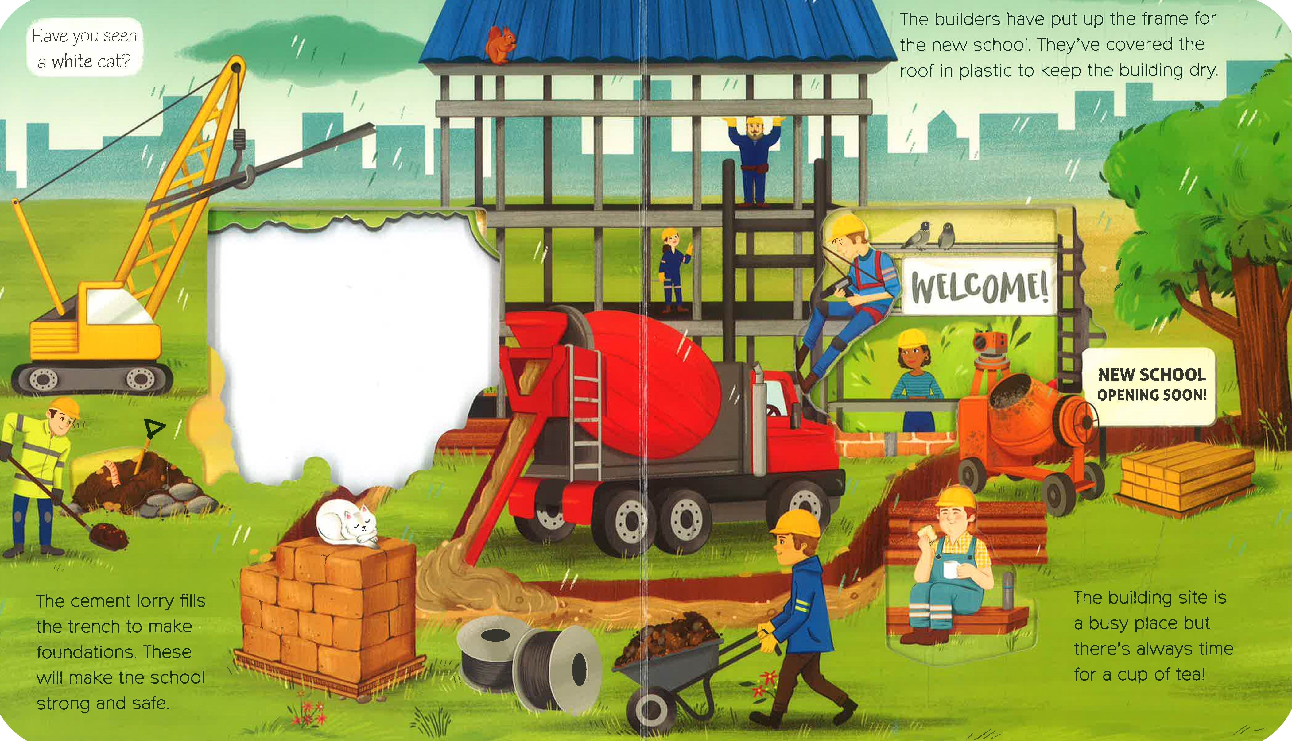 Watch a school being built from the ground up in this amazing, fact-packed book! With simple facts about each scene and so many things to spot, children will spend hours looking at the detailed pictures and peering through the pages.