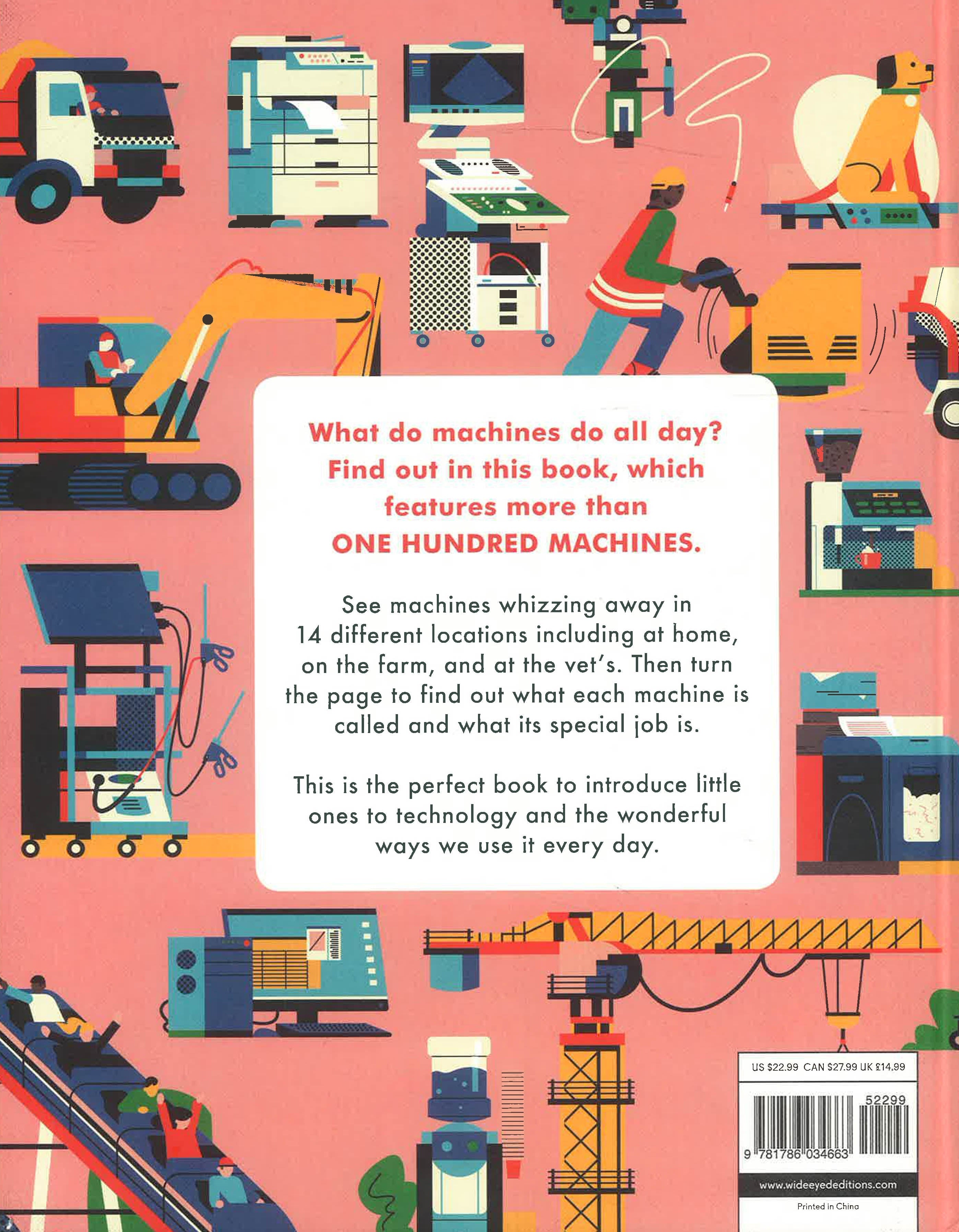 What do machines do all day? Find out in this beautifully illustrated book that features more than 100 machines and things that go. Little ones can explore 14 large, colorful scenes set in diverse places, turning the page after each to learn about eight special machines that work there.