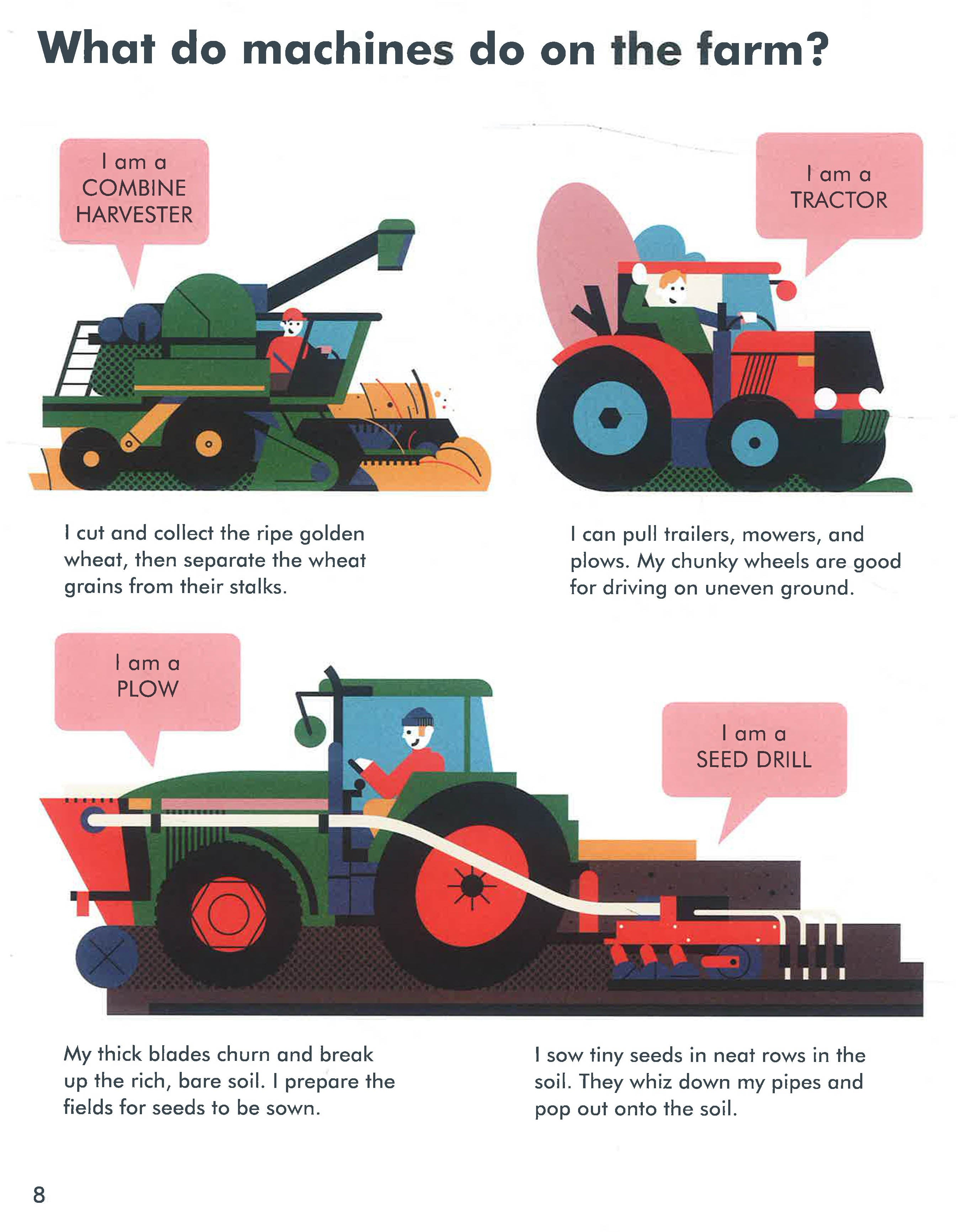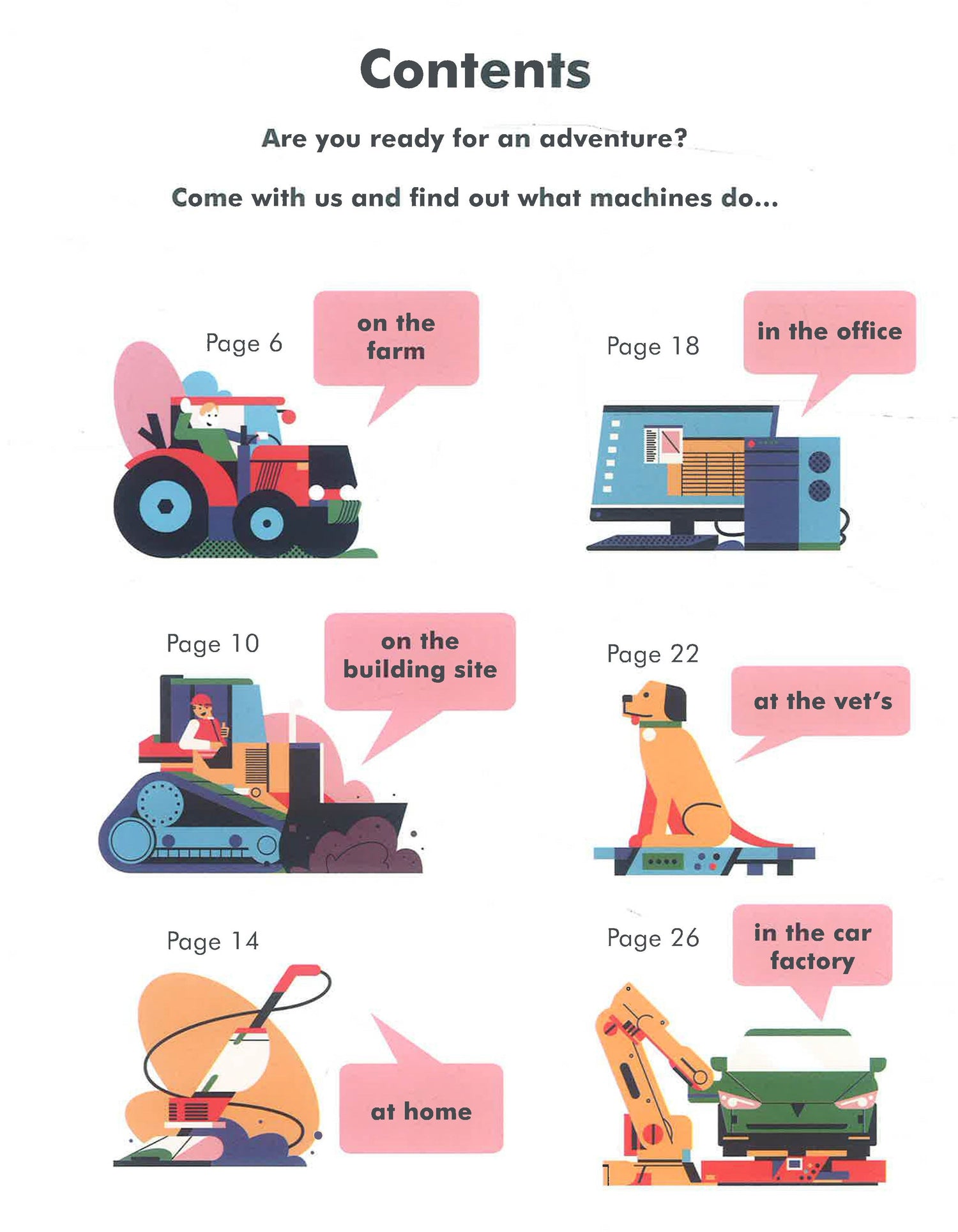 The combine harvester at the farm, the welding robot at the car factory, the turnstile at the train station, the cotton candy machine at the theme park...you'll be amazed by the range of machines at work.