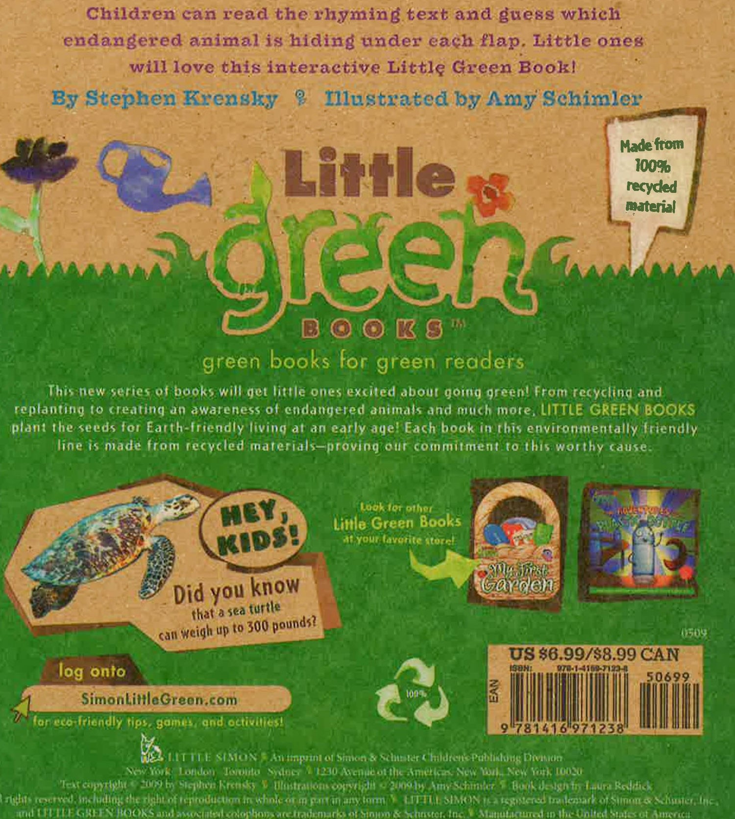 I show up bright against the sky. I swoop and swoosh and flutter by. What can I be? What do you see? Stephen Krensky's clever, rhyming text entices young readers to guess which endangered species are hiding beneath the flaps! From a panda bear to a monarch butterfly, each spread features text and flaps which hint at the animal's identity, until finally it is revealed by lifting the flap. Composed of 100% recycled material, this playful and interactive new title is both entertaining and environmentally friendly!