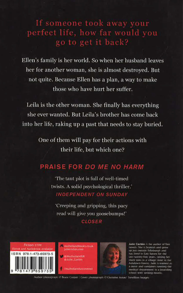 If someone took away your perfect life, how far would you go to get it back? A gripping psychological thriller for fans of Lisa Jewell and C.L Taylor.500 five star Goodreads ratingOnce you start reading, you won't want to stop. Two women, two secrets, one murder... If someone took away your perfect life, how far would you go to get it back? Ellen's family is her world. So when her husband leaves her for another woman, she is almost destroyed. But not quite, because Ellen has a plan, a way to make those who have hurt her suffer. Leila is the other woman. She finally has everything she ever wanted. But Leila's brother has come back into her life, raking up a past that needs to stay buried. One of them will pay for their actions with their life, but which one?******* Goodreads reviews'It was a unique novel, the story was nothing like I have ever read before. I was gripped all the way through and I'll definitely be recommending it to my other book lover friends. Can't wait to read more by Julie Corbin!''An excellent psychological drama...It's not difficult to see why Julie Corbin is so highly rated and her back catalogue has just made my tbr list that bit more unmanageable. Definitely recommend this.''I've been a fan of Julie's books for a few years now, so was really looking forward to reading 'What goes around'. Her books are very well written and always gripping, and this one is no exception.'Netgalley reviews'It's dark, its obsessive, it's compelling...this author really knows how to work her audience.''The book is brilliantly constructed making it a 'can't put it down' read, so much so I was trying to read the book while walking home, much to the dismay of my partner!''What Goes Around is at times intense and disturbing, but has an unpredictability that keeps you guessing right to the end. A superb read!'
