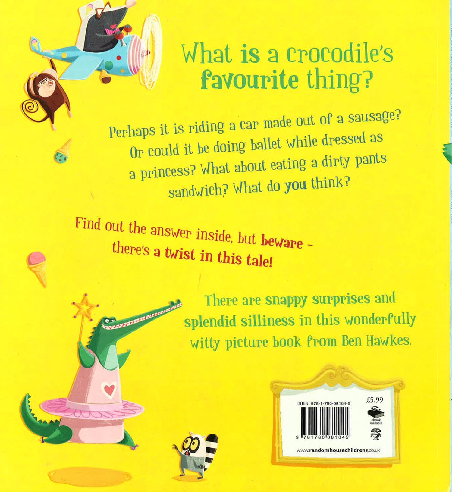 Is a crocodile's favourite thing doing ballet while dressed as a princess? Or maybe it's eating a dirty pants sandwich? Or what about riding a car made out of a sausage? There's silliness galore and a twist in the tale, when dinnertime comes for our croc...