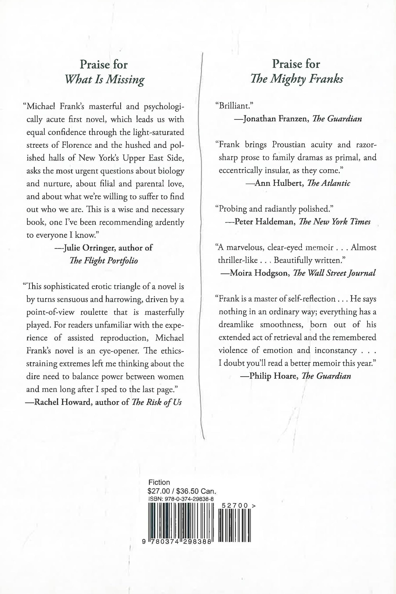 Suspenseful and gripping, award-winning author Michael Frank’s What is Missing is a psychological family drama about a father, a son, and the woman they both love.