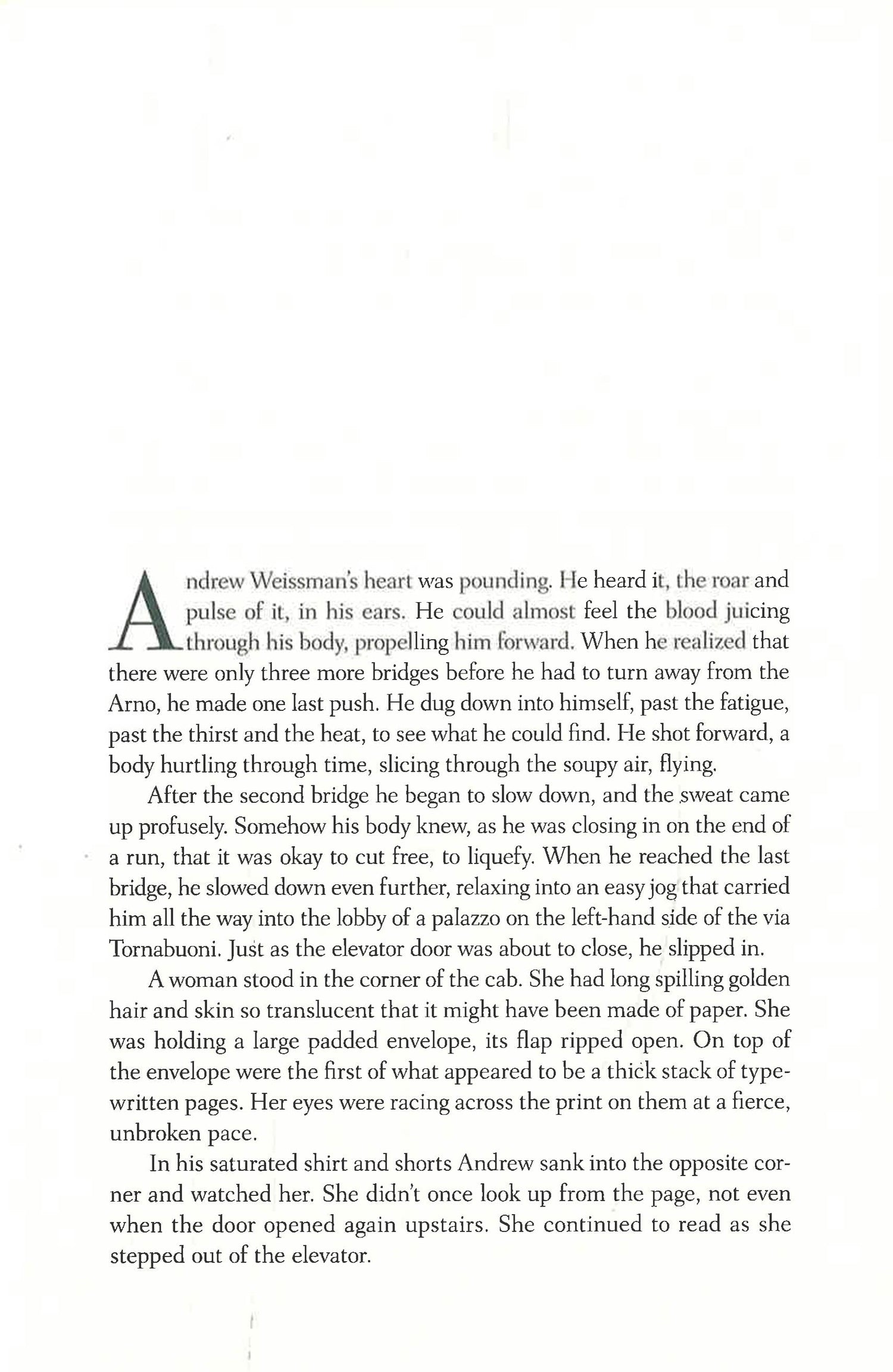 Costanza Ansaldo, a half-Italian and half-American translator, is convinced that she has made peace with her childlessness. A year after the death of her husband, an eminent writer, she returns to the pensione in Florence where she spent many happy times in her youth, and there she meets, first, Andrew Weissman, an acutely sensitive seventeen-year-old, and, soon afterward, his father, Henry Weissman, a charismatic New York physician who specializes in—as it happens—reproductive medicine.
