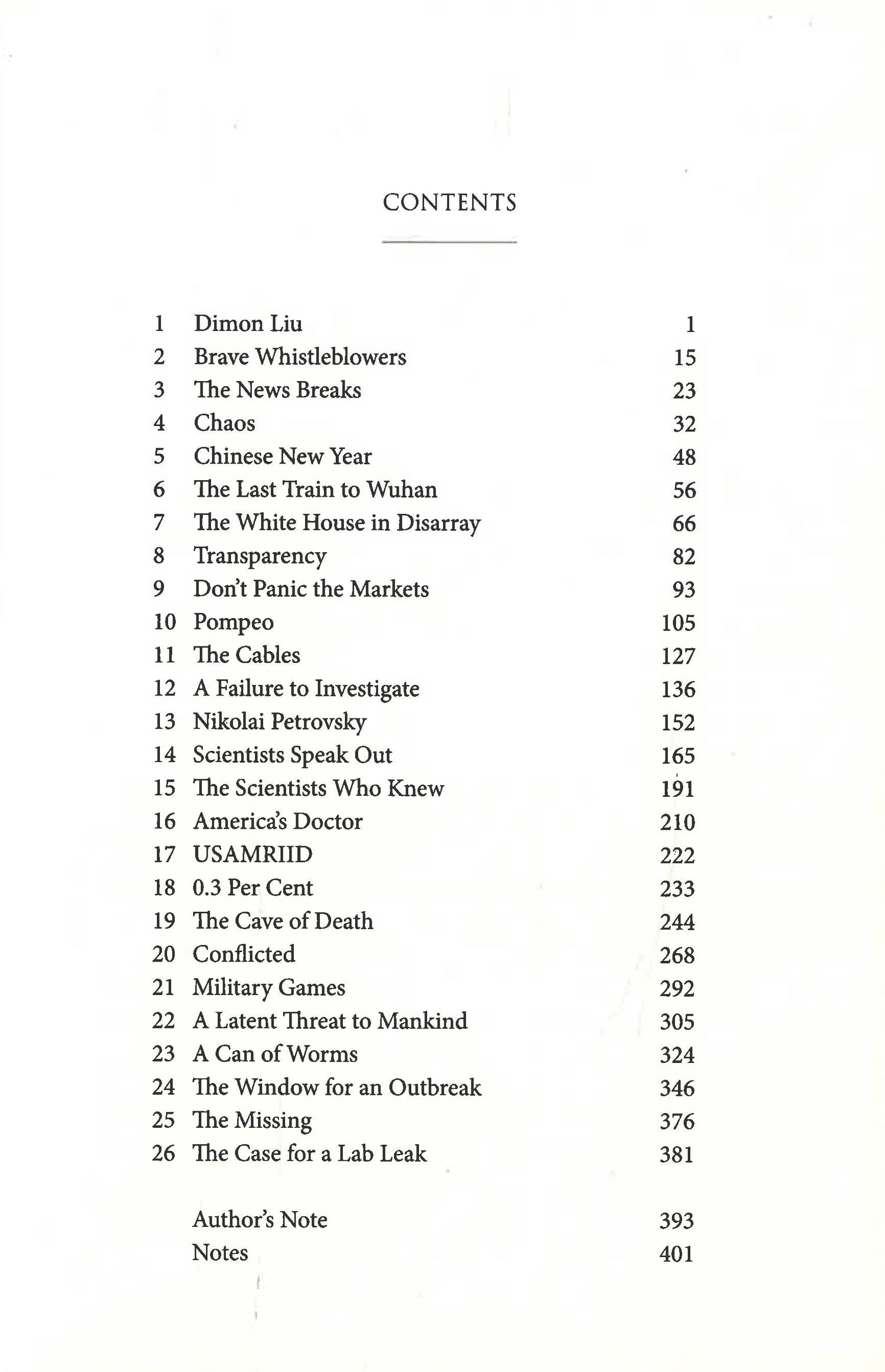 Bravely reported and chillingly laid out, Markson brings to light the stories of the pandemic from the people on the ground: the scientists and national security officials who raised uncomfortable truths and were labelled conspiracy theorists, until government agencies began to suspect they might have been right all along. These brave individuals persisted through bruising battles and played a crucial role in investigating the origins of Covid-19 to finally, in this book, bring us closer to the truth of what really happened in Wuhan.