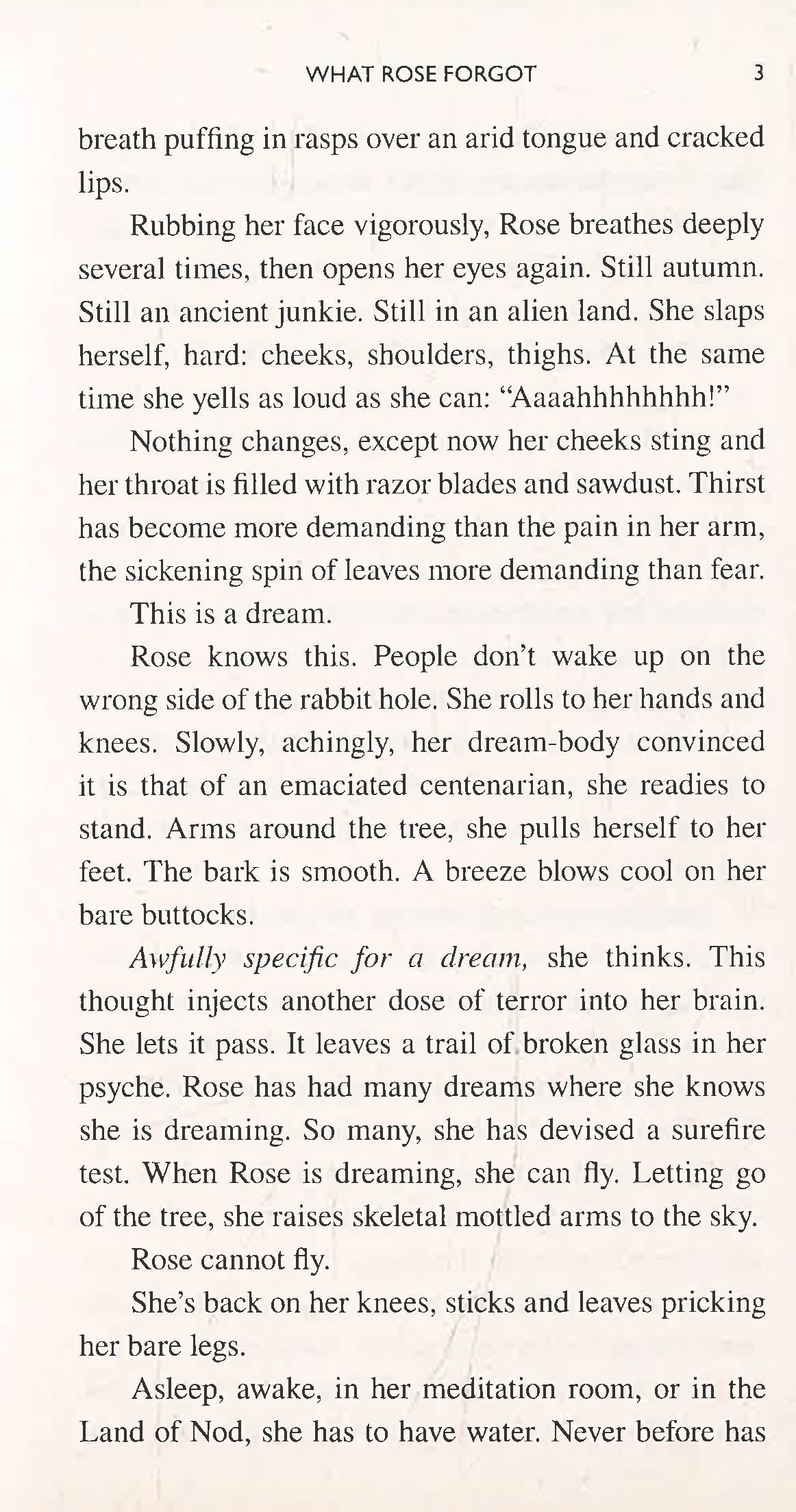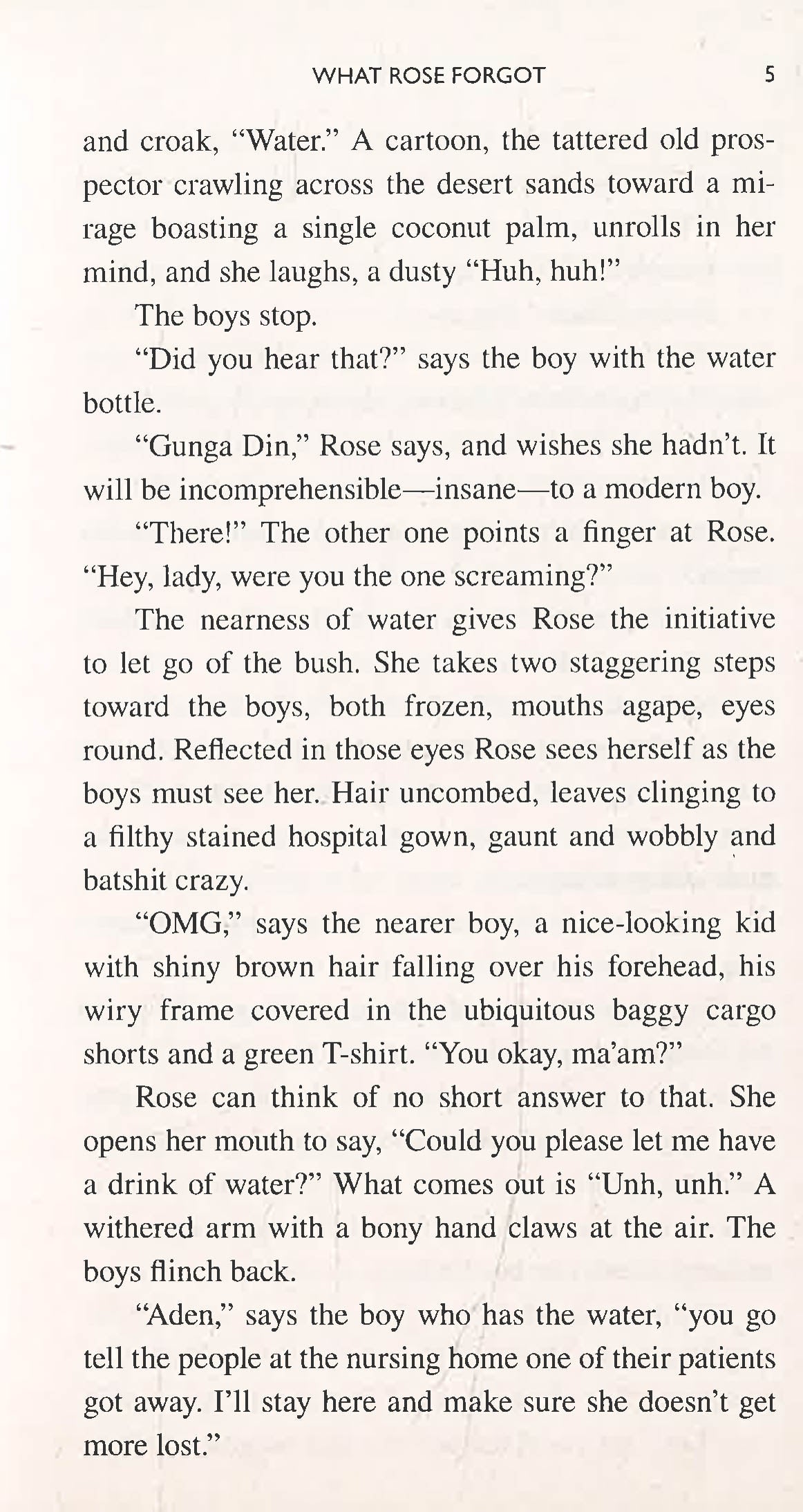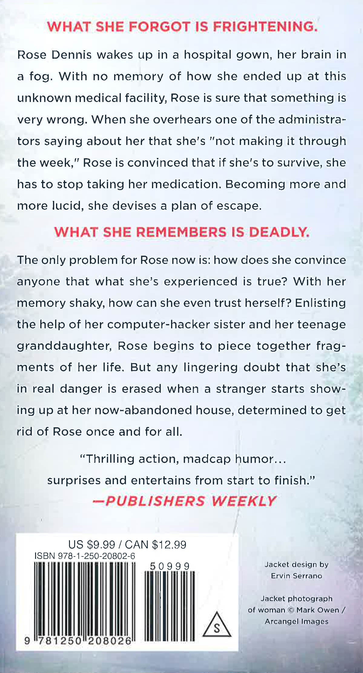 The only problem for Rose now is: how does she convince anyone that what she's experienced is true? With her memory shaky, how can she even trust herself? Enlisting the help of her computer-hacker sister and her teenage granddaughter, Rose begins to piece together fragments of her life. But any lingering doubt that she's in real danger is erased when a stranger starts showing up at her now-abandoned house, determined to get rid of Rose once and for all.