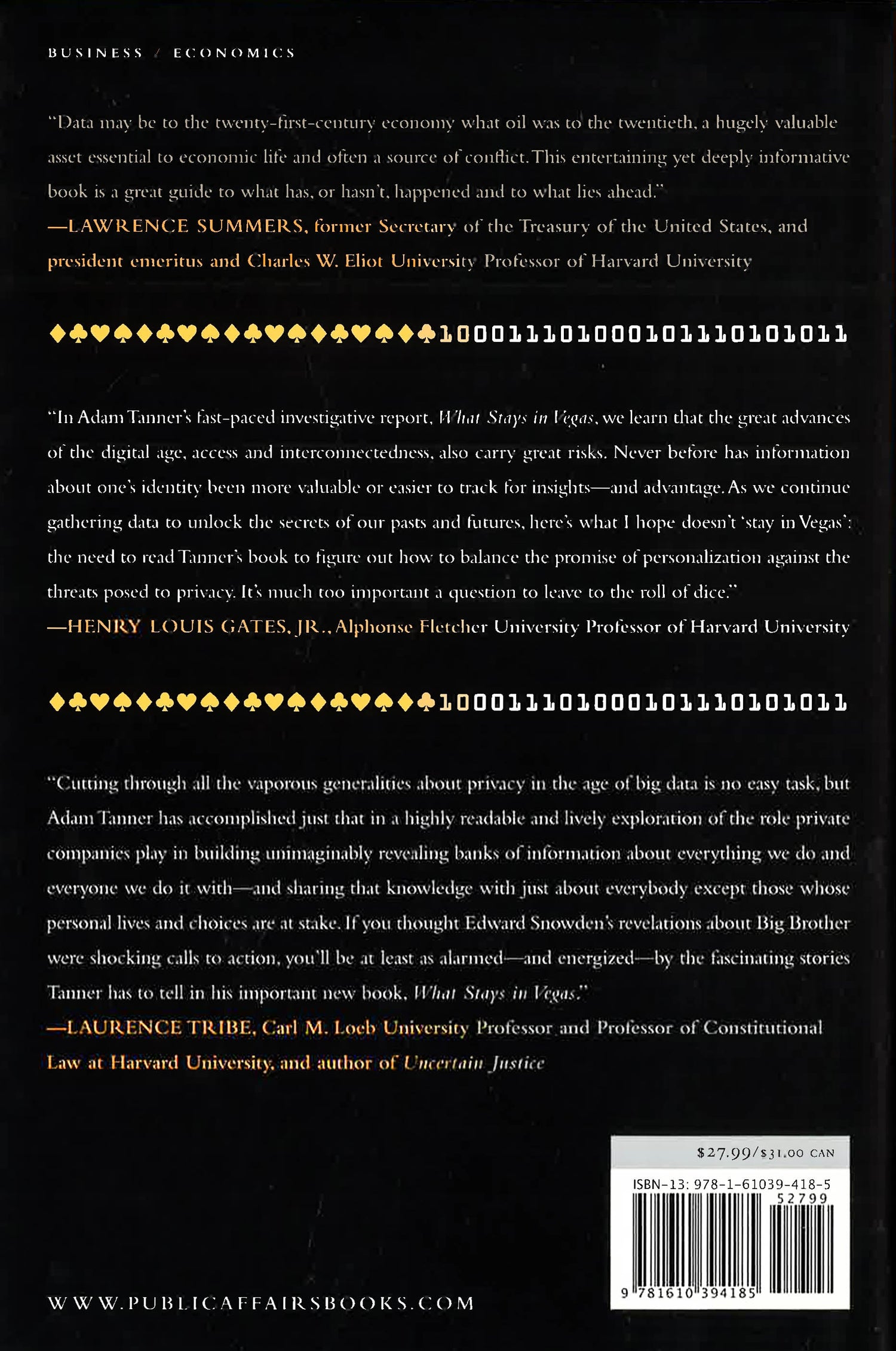 The greatest threat to privacy today is not the NSA, but good-old American companies. Internet giants, leading retailers, and other firms are voraciously gathering data with little oversight from anyone.In Las Vegas, no company knows the value of data better than Caesars Entertainment. Many thousands of enthusiastic clients pour through the ever-open doors of their casinos. The secret to the company's success lies in their one unrivaled asset: they know their clients intimately by tracking the activities of the overwhelming majority of gamblers. They know exactly what games they like to play, what foods they enjoy for breakfast, when they prefer to visit, who their favourite hostess might be, and exactly how to keep them coming back for more.Caesars' dogged data-gathering methods have been so successful that they have grown to become the world's largest casino operator, and have inspired companies of all kinds to ramp up their own data mining in the hopes of boosting their targeted marketing efforts. Some do this themselves. Some rely on data brokers. Others clearly enter a moral gray zone that should make American consumers deeply uncomfortable.We live in an age when our personal information is harvested and aggregated whether we like it or not. And it is growing ever more difficult for those businesses that choose not to engage in more intrusive data gathering to compete with those that do. Tanner's timely warning resounds: Yes, there are many benefits to the free flow of all this data, but there is a dark, unregulated, and destructive netherworld as well.
