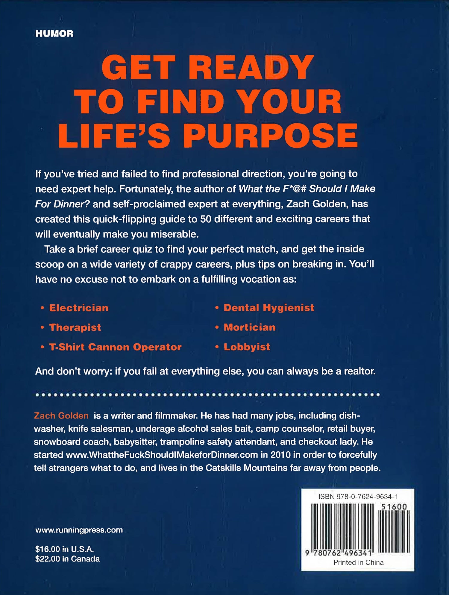 If you've tried and failed to find your purpose in life, you're going to need expert help. From the author of What the F*** Should I Make For Dinner?, this laugh-out-loud career guide will set you straight.