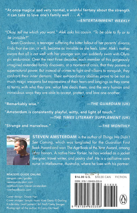 "Okay, tell me which you want," Alek asks his cousin at the outset of What the Family Needed. "To be able to fly or to be invisible." And soon Giordana, a teenager suffering the bitter fallout of her parents' divorce, finds that she can, at will, become as invisible as she feels. Later, Alek's mother, newly adrift in the disturbing awareness that all is not well with her younger son, can suddenly swim with Olympic endurance. Over three decades, in fact, each member of this gorgeously imagined extended family discovers, at a moment of crisis, that he or she possesses a supernatural power.