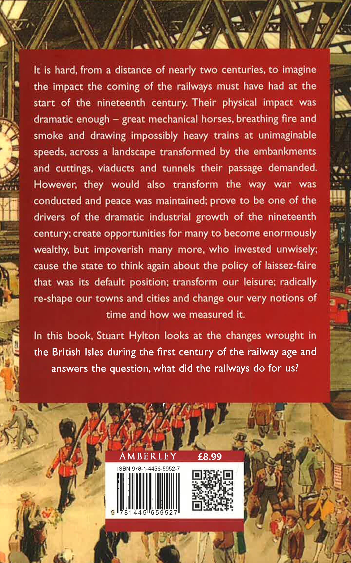 It is hard, from a distance of nearly two centuries, to imagine the impact the coming of the railways must have had at the start of the nineteenth century. Their physical impact was dramatic enough – great mechanical horses, breathing fire and smoke and drawing impossibly heavy trains at unimaginable speeds, across a landscape transformed by the embankments and cuttings, viaducts and tunnels their passage demanded. However, they would also transform the way war was conducted and peace was maintained; prove to be one of the drivers of the dramatic industrial growth of the nineteenth century; create opportunities for many to become enormously wealthy, but impoverish many more, who invested unwisely; cause the state to think again about the policy of laissez-faire that was its default position; transform our leisure; radically re-shape our towns and cities and change our very notions of time and how we measured it. In this book, Stuart Hylton looks at the changes wrought in the British Isles during the first century of the railway age and answers the question, what did the railways do for us?