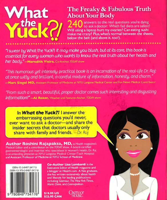 All women have concerns about their body that they are just too embarrassed to mention to their doctor. In "What The Yuck?!" "Health Magazine" Medical Editor Dr. Roshini Rajapaksa (Dr. Raj) answers them all - from the serious like 'Is it bad that I drank margaritas before I realized I was pregnant?' and 'Could this mole be skin cancer?' to the offbeat like 'Can too many venti lattes (Green Tea latte made with Soy) give you a heart attack?' and 'Why do I get a headache when I eat chocolate cupcakes?' Dr. Raj sheds light on even the most confusing symptoms, telling readers when not to worry, and when to see their doctor. The book also shares insider tips from Dr. Raj, fascinating factoids - such as 'Most women have one breast that's larger than the other' - as well as poll results, so readers can see at a glance how many seemingly-weird body issues are actually healthy and normal. All 205 questions come from real women; they cover everyday health concerns and thoroughly modern conundrums, such as H1N1 (Swine Flu), celebrity diets, and mobile phone dangers. The book is organized by themes such as 'That time of the month' and 'Between the sheets', making it easy to navigate and irresistible to flip through. Sure to be a classic, "What The Yuck?!" is a book women of all ages will want to own.