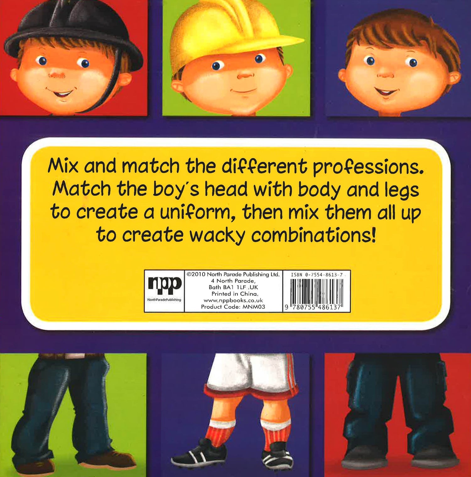 Mix and match the different profession. Match the boy's head with body and legs to create a uniform, then mix the all up to create wacky combinations!