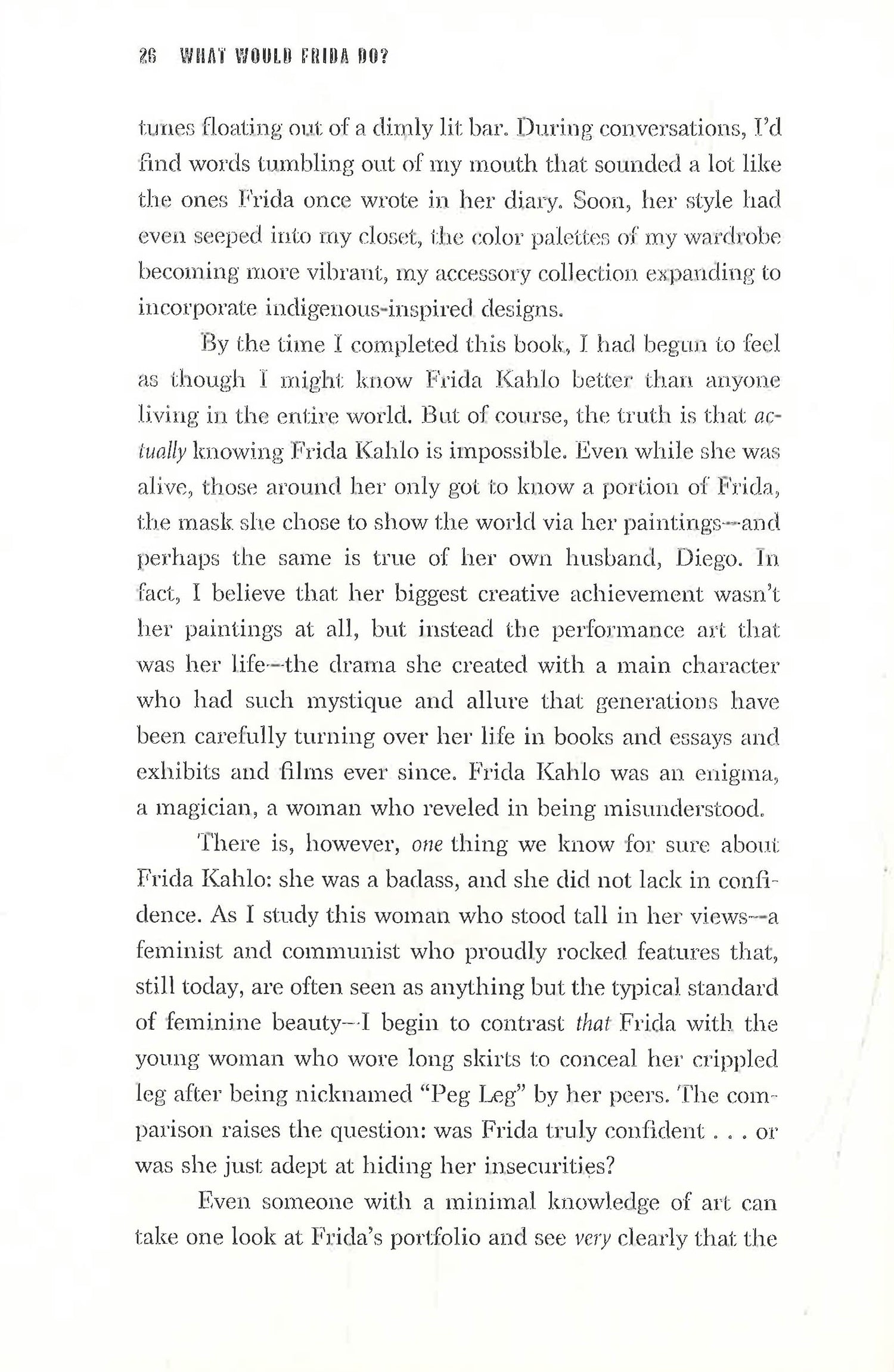 Revered as much for her fierce spirit as she is for her art, Frida Kahlo stands today as a feminist symbol of daring creativity. Her paintings have earned her admirers around the world, but perhaps her greatest work of art was her own life. What Would Frida Do? celebrates this icon's signature style, outspoken politics, and boldness in love and art-even in the face of hardship and heartbreak. We see her tumultuous marriage with the famous muralist Diego Rivera and rumored flings with Leon Trotsky and Josephine Baker. In this irresistible read, writer Arianna Davis conjures Frida's brave spirit, encouraging women to create fearlessly and stand by their own truths.