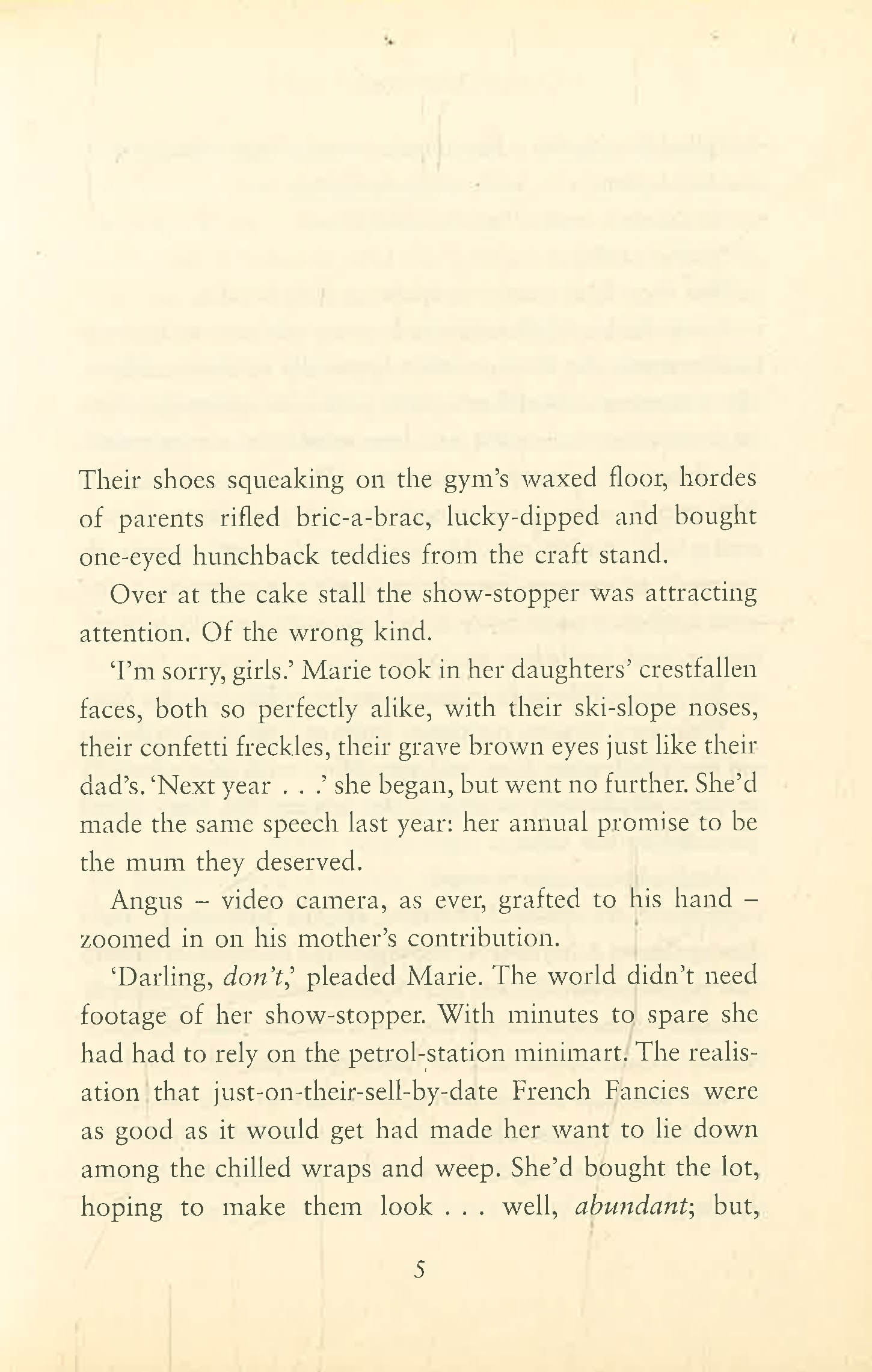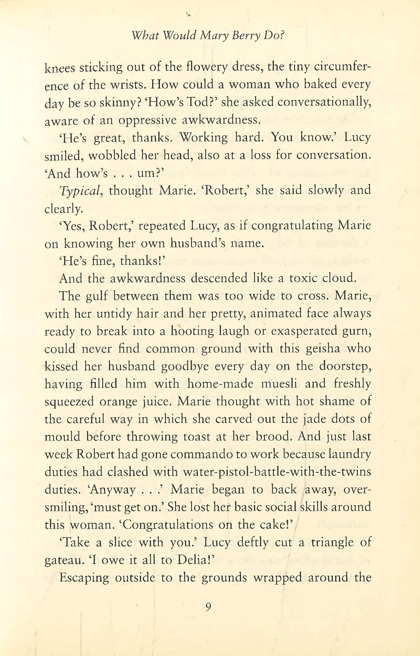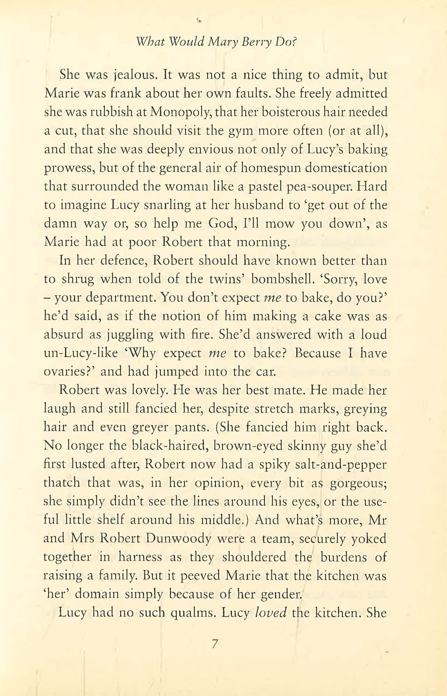 Marie Dunwoody doesn't want for much in life. She has a lovely husband, three wonderful children, and a business of her own. But her cupcakes are crap. Her meringues are runny and her biscuits rock-hard. She cannot bake for toffee. Or, for that matter, make toffee. Marie can't ignore the disappointed looks any more, or continue to be shamed by neighbour and nemesis, Lucy Gray. Lucy whips up perfect profiteroles with one hand, while ironing her bed sheets with the other. Marie's had enough: this is the year it all changes. She vows to follow - to the letter - recipes from the Queen of Baking, and at all times ask, 'What would Mary Berry do?' Husband Robert has noticed that his boss takes crumb structure as seriously as budget cuts and with redundancies on the horizon, he too puts on a pinny. Twins Rose and Iris are happy to eat all the half-baked mistakes that come their way, but big brother Angus is more distant than usual, as if something is troubling him. And there is no one as nosey as a matching pair of nine-year-old girls ... Marie starts to realise that the wise words of Mary Berry can help her with more than just a Victoria Sponge. But can Robert save the wobbling souffle that is his career? And is Lucy's sweet demeanour hiding something secretly sour?