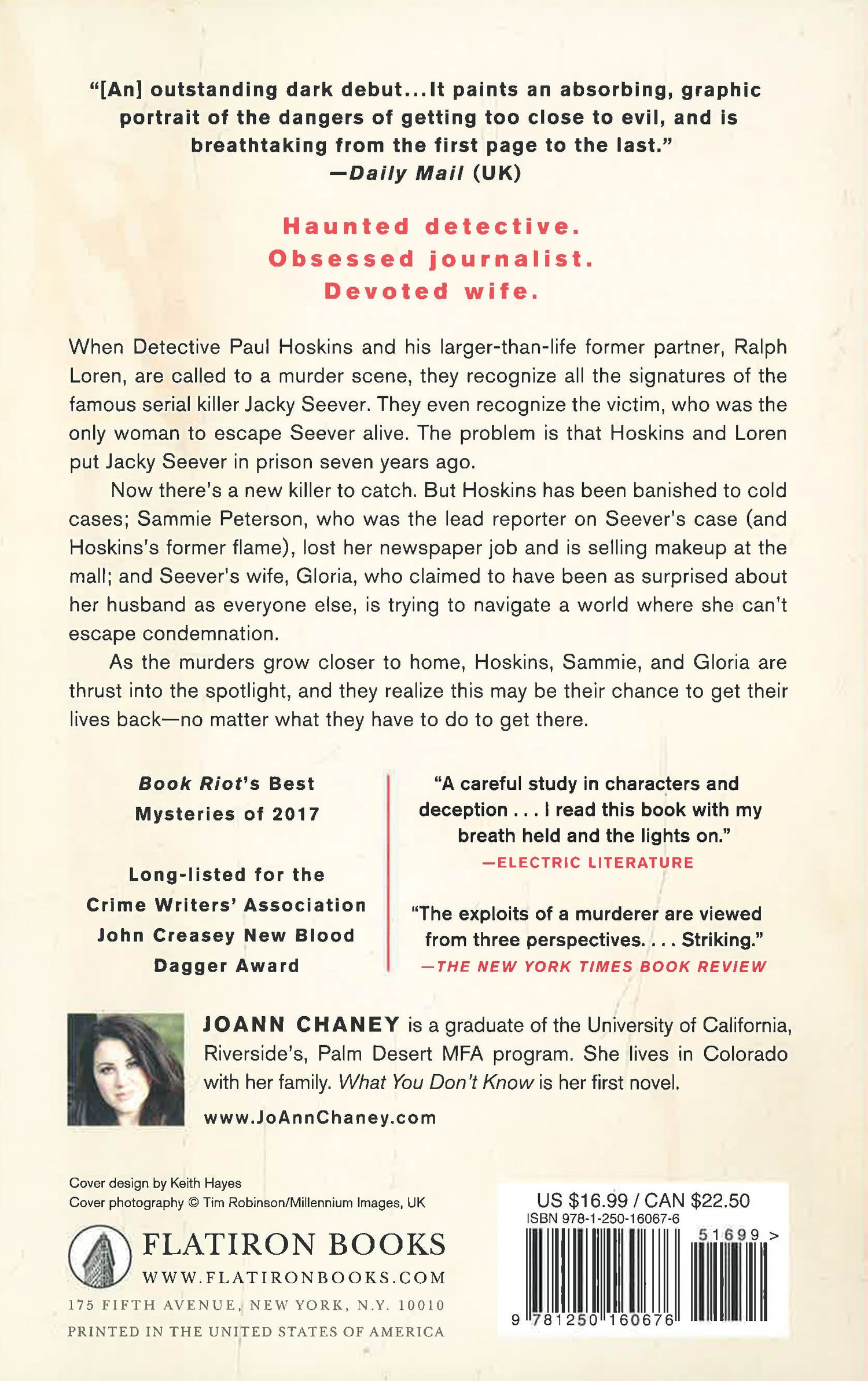 "Superb characters, sparkling dialogue, and a gripping, terrifying plot, plus flashes of humor to boot; JoAnn Chaney's What You Don't Know has it all." --Chris Pavone, New York Times bestselling author
