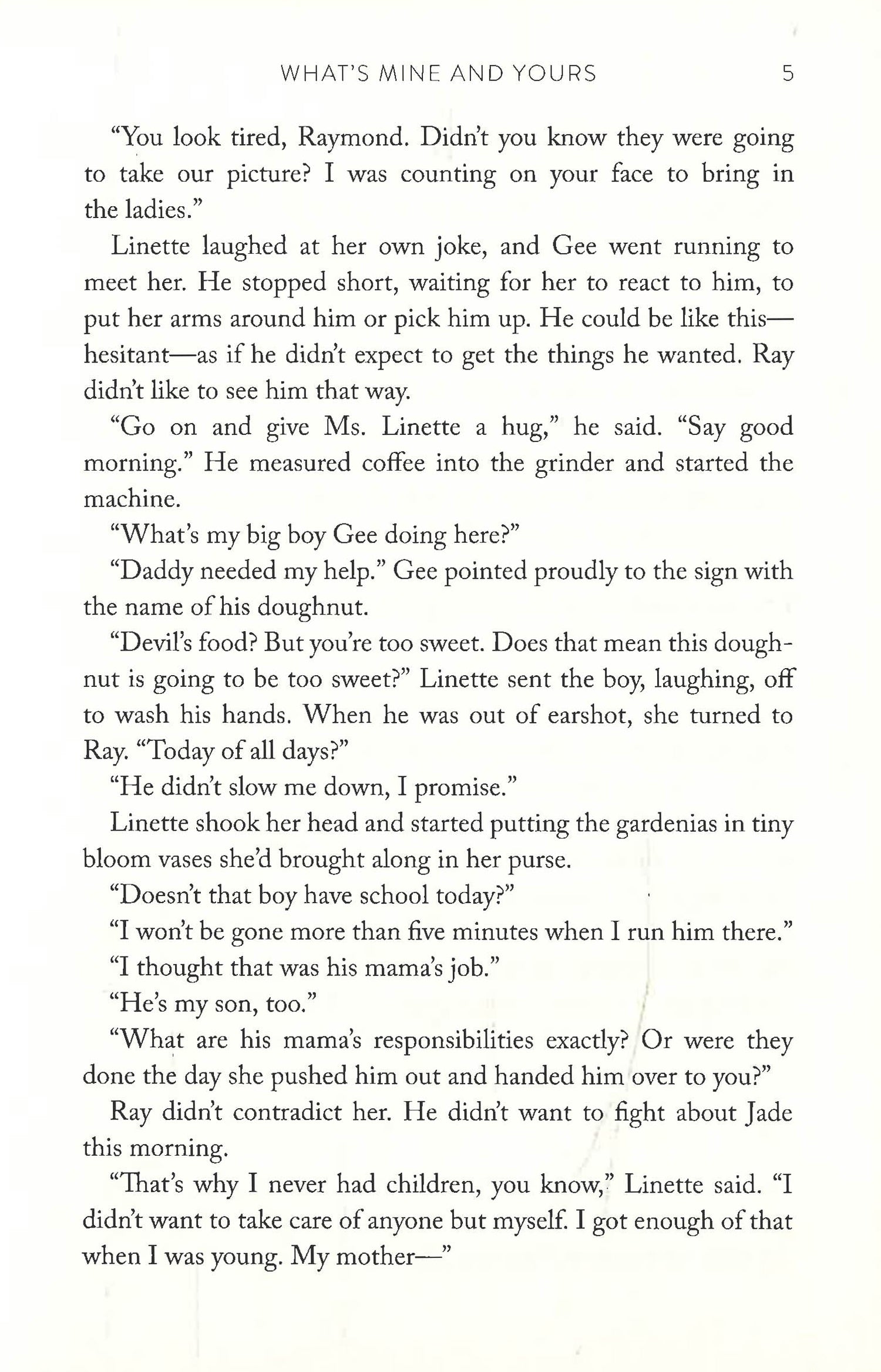 What’s Mine and Yours is an expansive yet intimate multigenerational tapestry of motherhood, identity, and the legacies we inherit. It explores the unique organism that is every family: what breaks them apart and how they come back together.