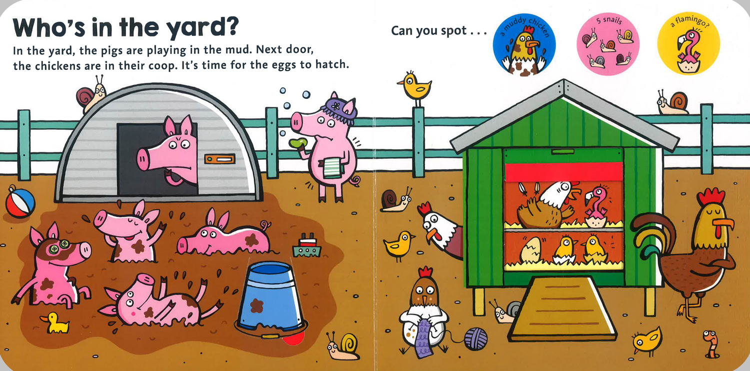 Behind every flap there's a barnyard surprise just waiting to be revealed. The chunky mechanisms are fun to use and ideal for little hands.