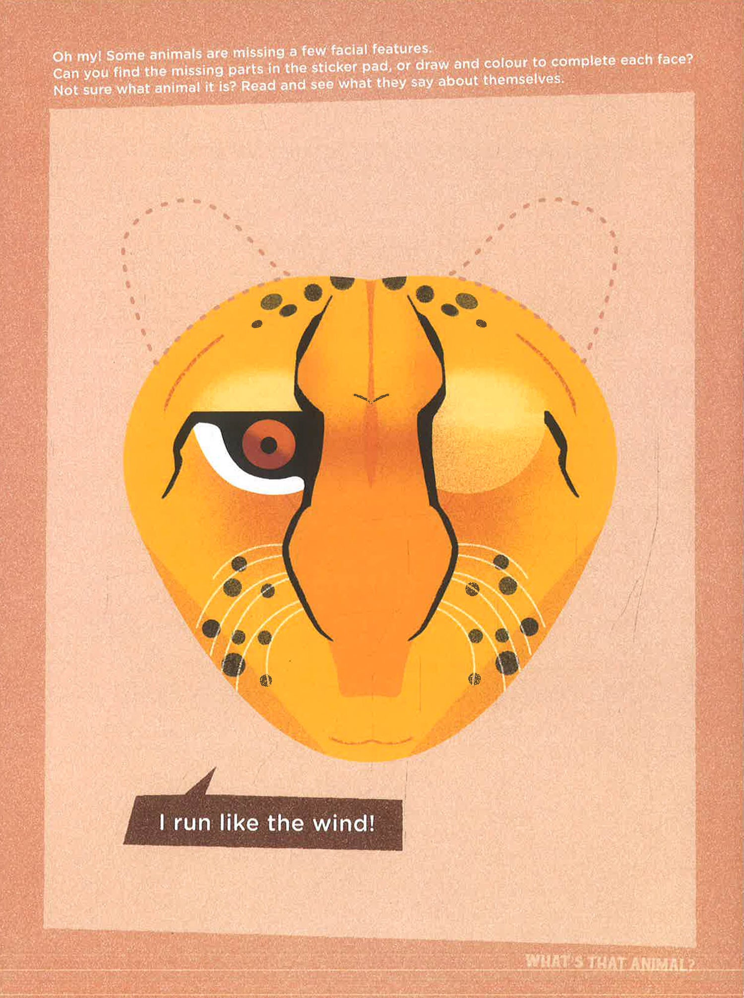 Are all monsters creepy and evil, or can they be happy or silly? Can a lion be cute and cuddly, or a monkey stubborn and sulky? Do all robots have square faces? What does a cool robot really look like to you? The What's That Face? series lets children create their own answers to questions like these through interactive activity books that spark the imagination and allow lots of room for creativity! Each book includes 32 pages of blank creature designs for drawing, a number of different detachable mask templates, and sticker sheets featuring whimsical and off-beat facial features specially designed to match the theme. The books are perfect for collage, drawing, coloring and role-playing, allowing young artists to create and become their very own monsters, wild animals, and robots. Collect all of the What's That Face? books to mix-and-match your own crazy creatures! For ages 4 and up.
