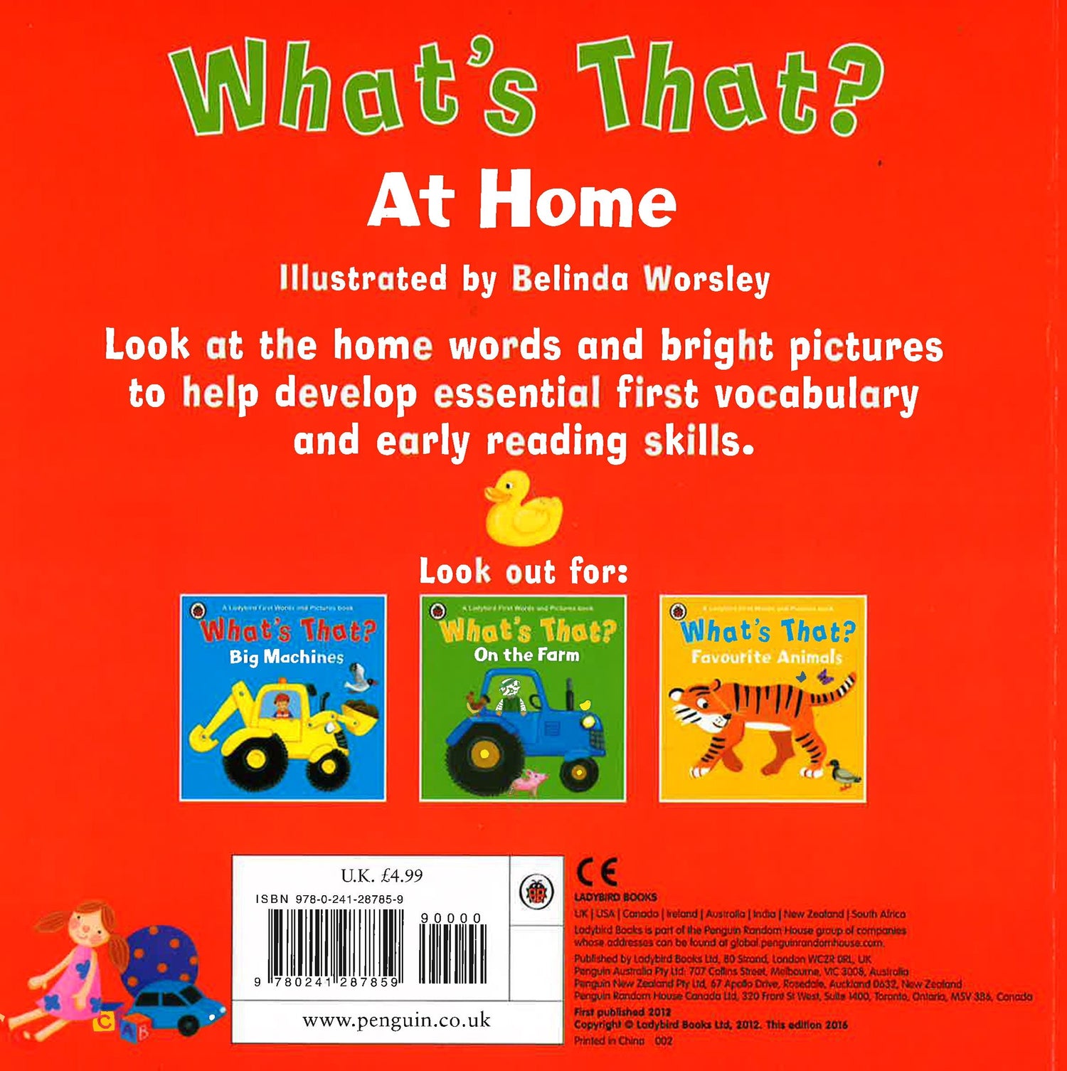 The Ladybird First Words and Pictures series is perfect for helping to develop your toddler's early vocabulary. For older children, linking words to pictures is also an important first reading skill.What's That? At Home contains clear, bright pictures and words of everyday home objects to look at and talk about, perfect for young children curious about the world around them.